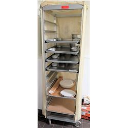 Tall Rolling Sheet Pan Mobile Pan Cooling Rack Shelf w/ 6 Pans & Misc 21"W x 25"D x 71"H