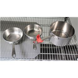 Qty 3 Metal Pots - Large Sauté Pot & 2 @ Smaller Sauté or Frying Pans