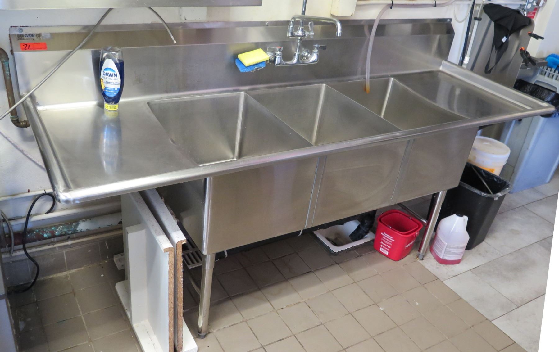GSW SG18243D Stainless 3-Basin Sink w/ Drainboards 90" x 24" x 45"H