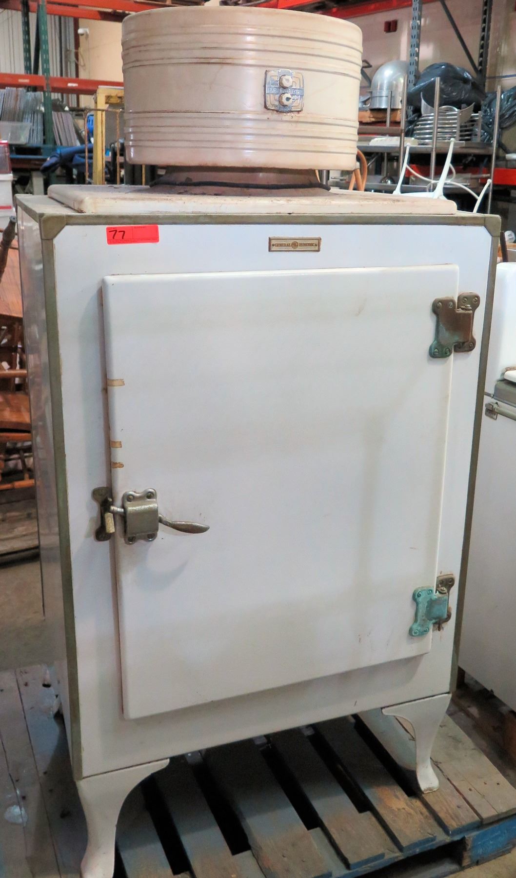 General Electric Vintage Footed Single Door Refrigerator 34.5”’W x 27”D x 68”H