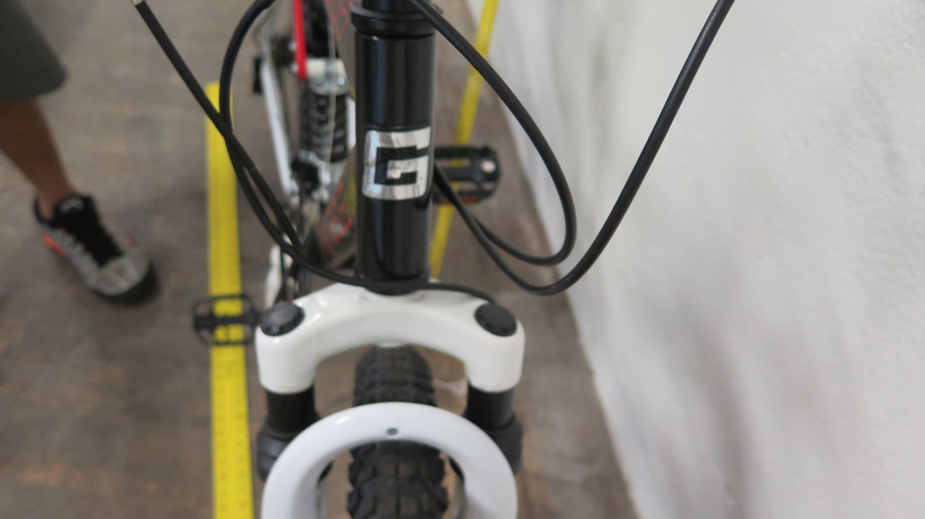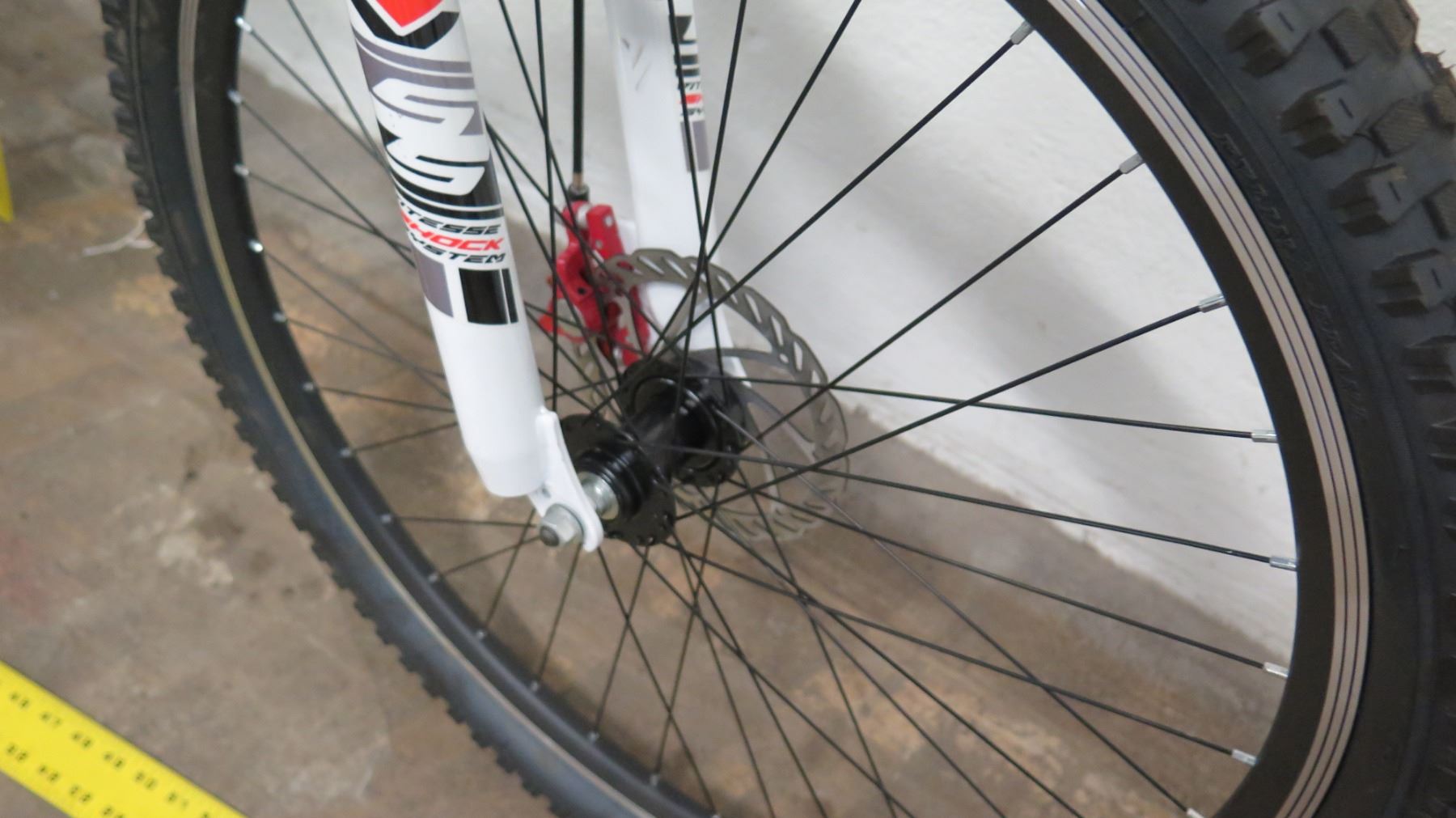 Genesis V2100 Mountain Bike, Shimano Full Suspension, Black/White. Bikes have been in storage at the HPD warehouse for some time and will need to have tires inflated and basic maintenance done. May be missing parts.