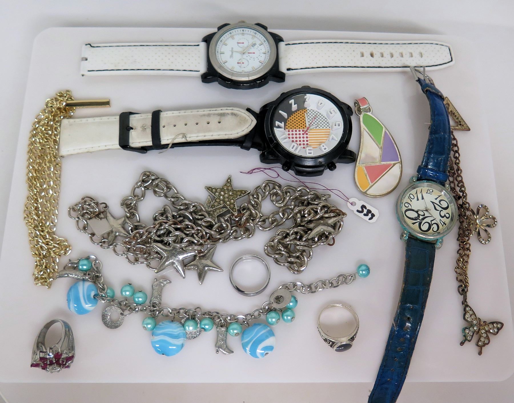 Geneva Watch, 2 Other Watches, 2 Rings, Misc Charm Bracelets