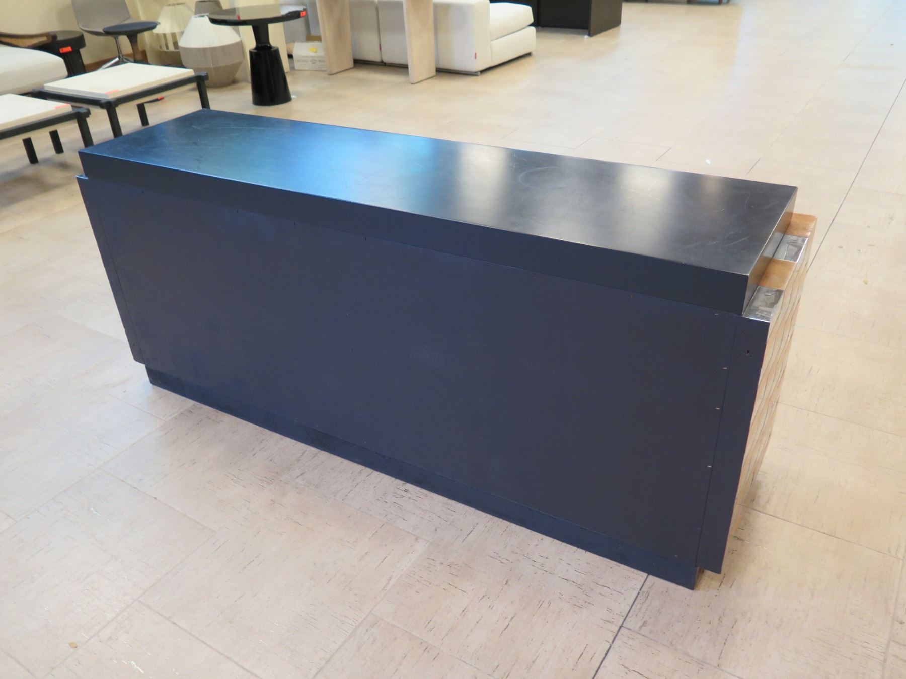 Geometric Entry Console Cabinet w/ Black Top & Mirrored Accents 76" x 22" x 33"H