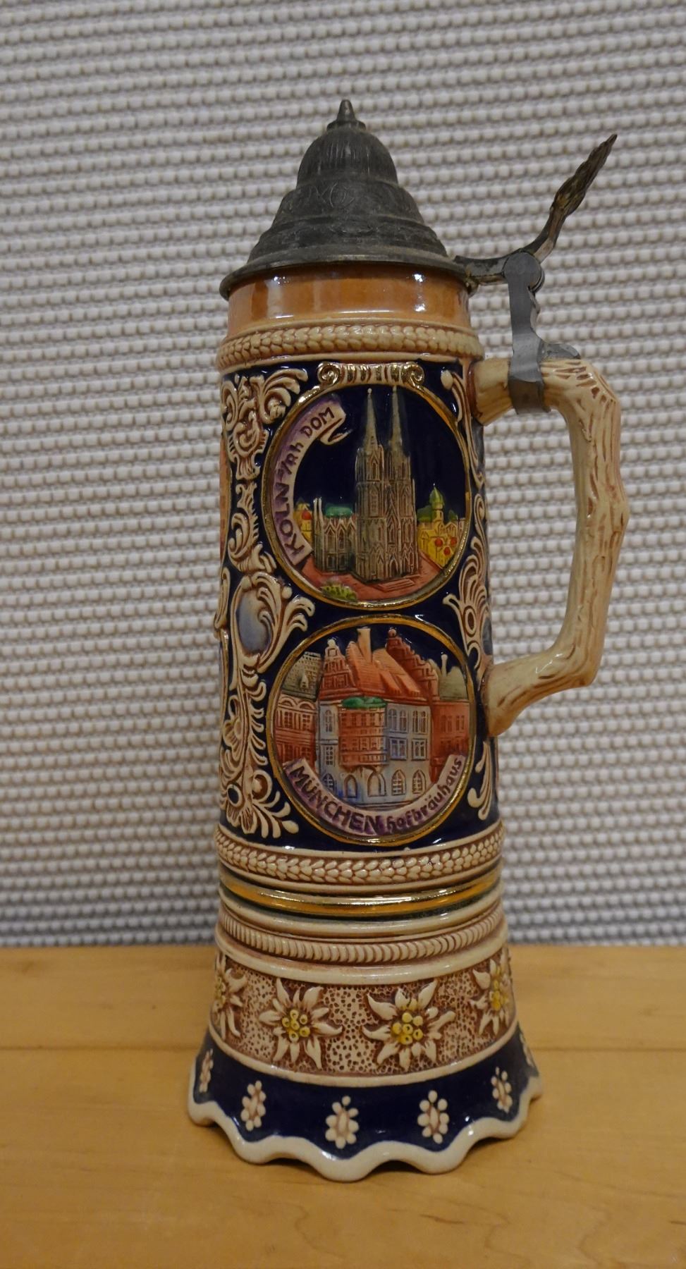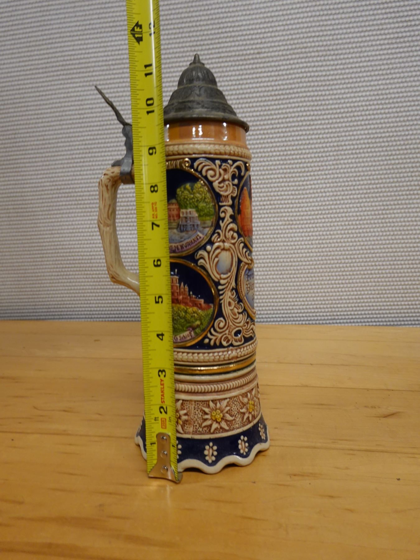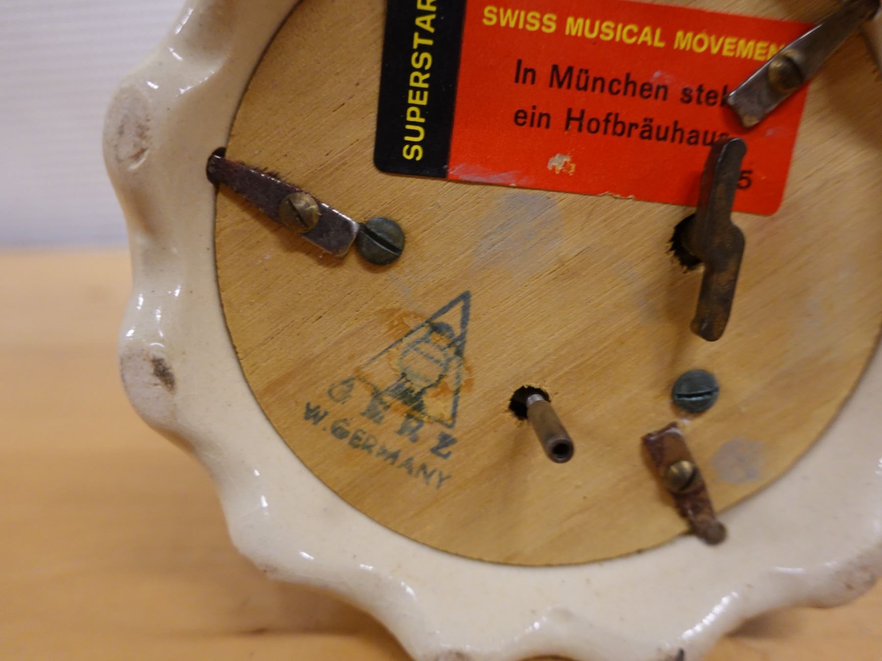 Gerz German Beer Stein Music Box w/ Lid & Maker's Mark 4.5" Dia x 12"H
