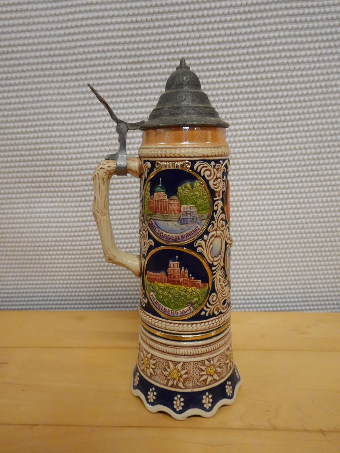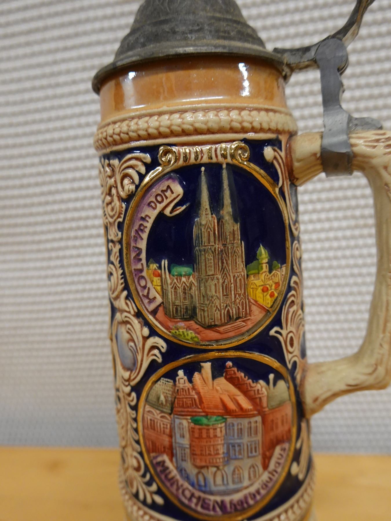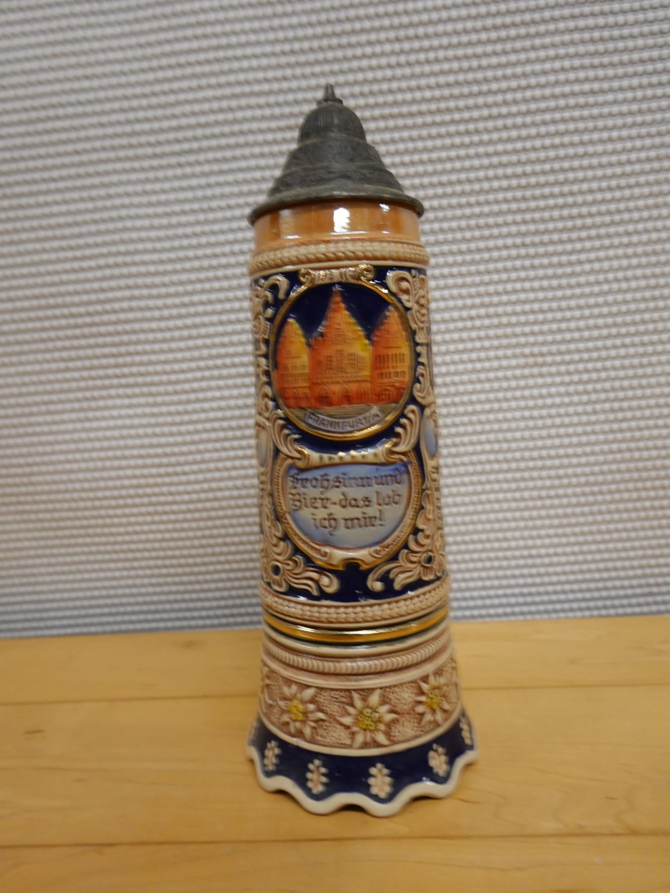 Gerz German Beer Stein Music Box w/ Lid & Maker's Mark 4.5" Dia x 12"H