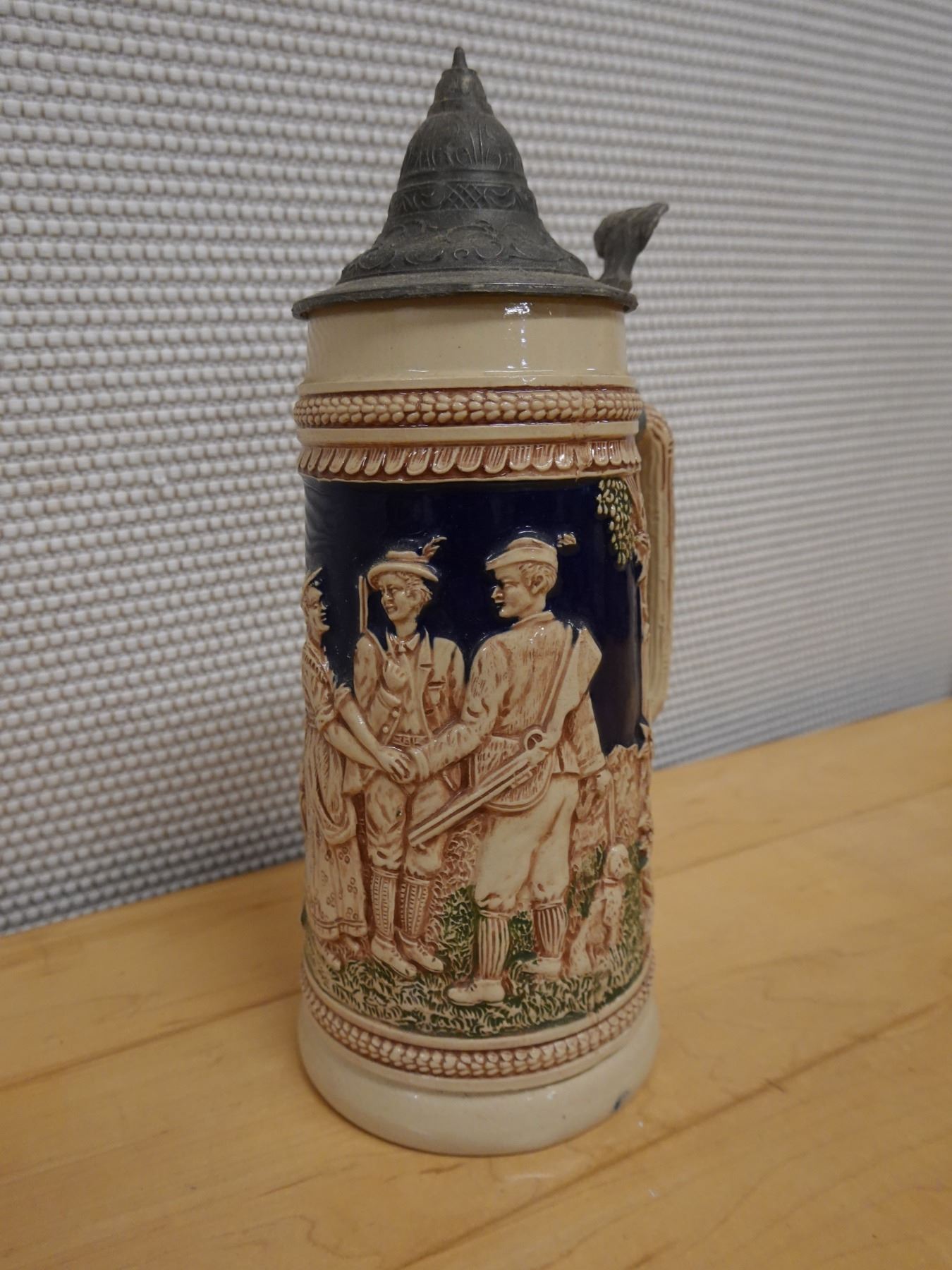 Gerz German Beer Stein w/ Lid & Maker's Mark 4" Dia x 11"H