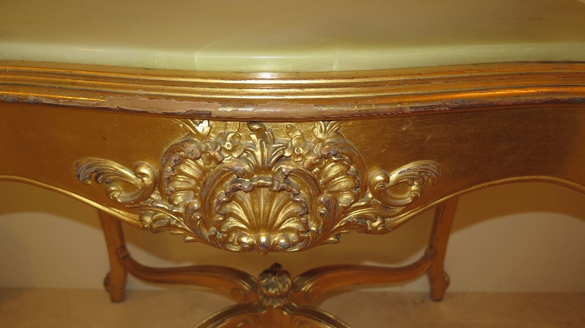 Gilded Italian Onyx-Topped Console Table 23 X 32 X 30 Ht.