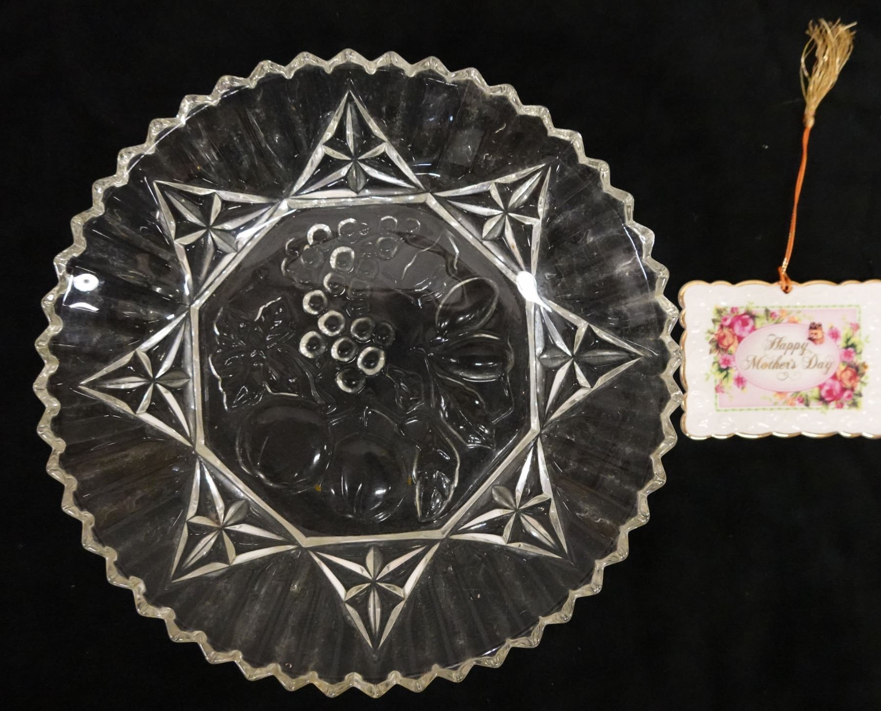 Glass Bowl 10" Dia, 2.25"H & Happy Mother's Day Ceramic Postcard 4" L