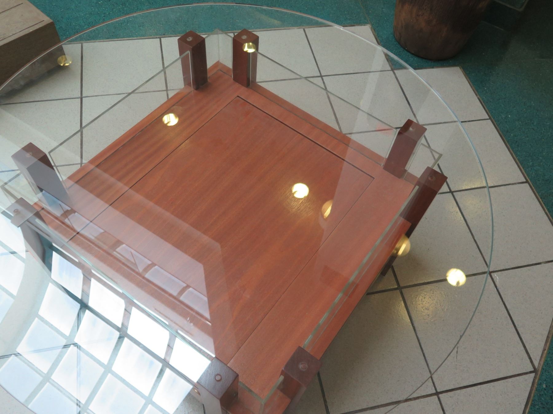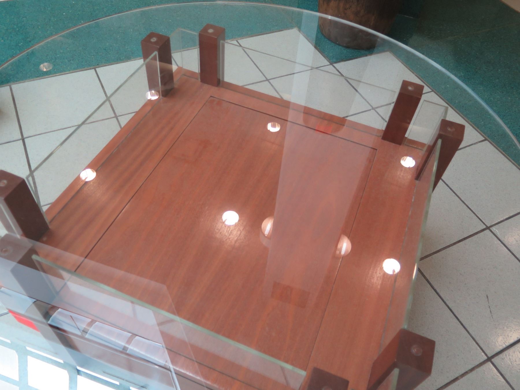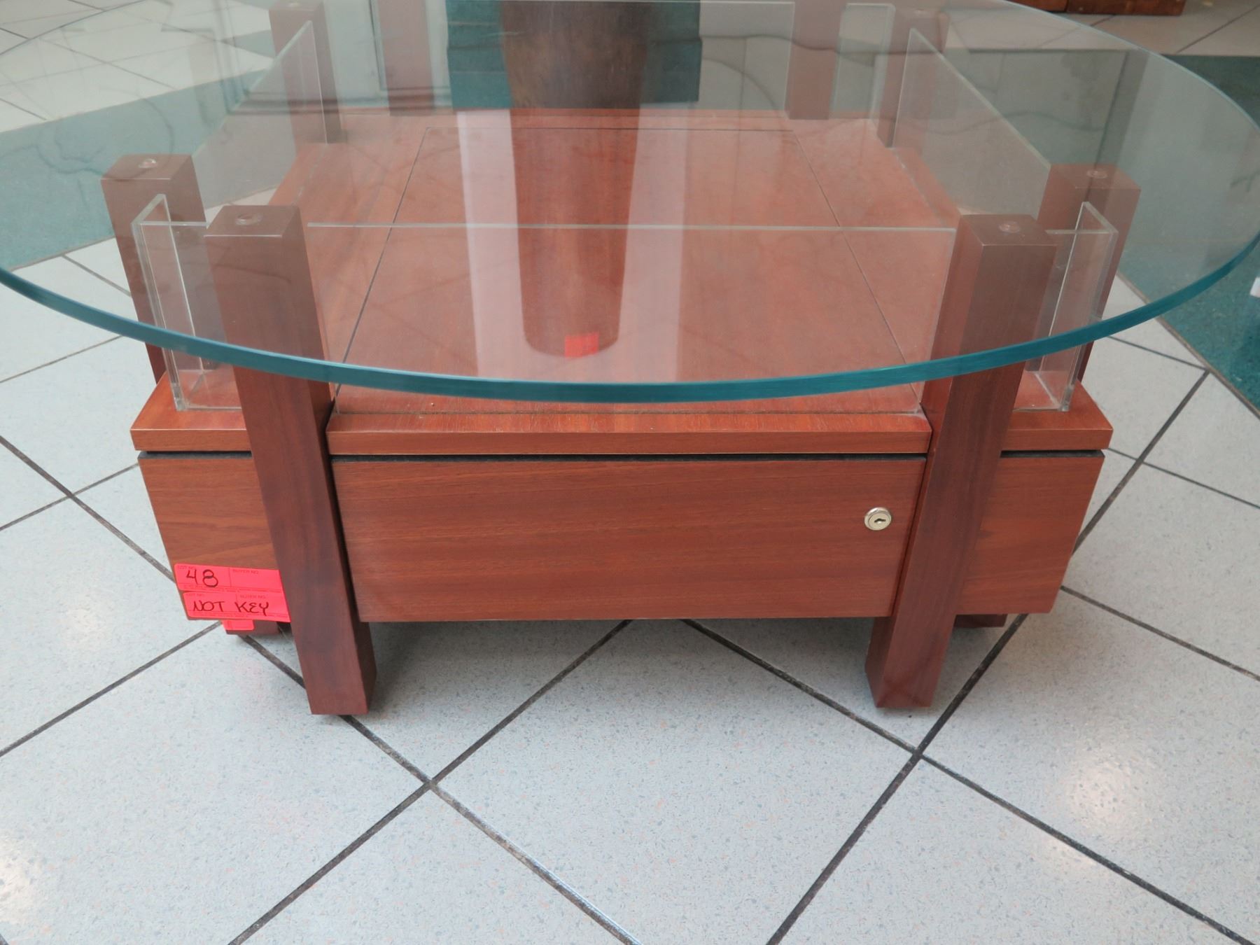 Glass Coffee Table with Square Base (base is 30" x 30" x 18"H), No key for lock on bottom
