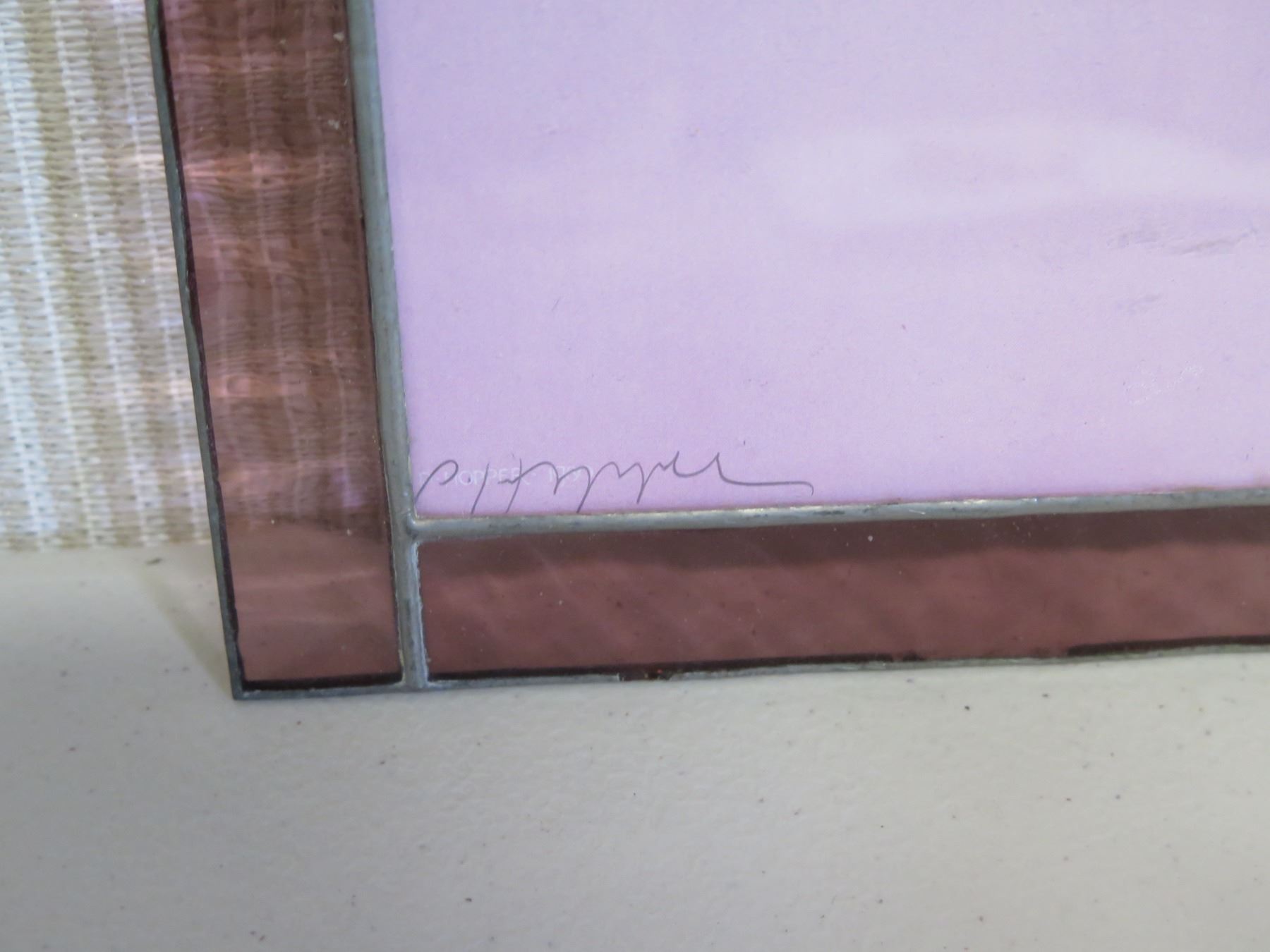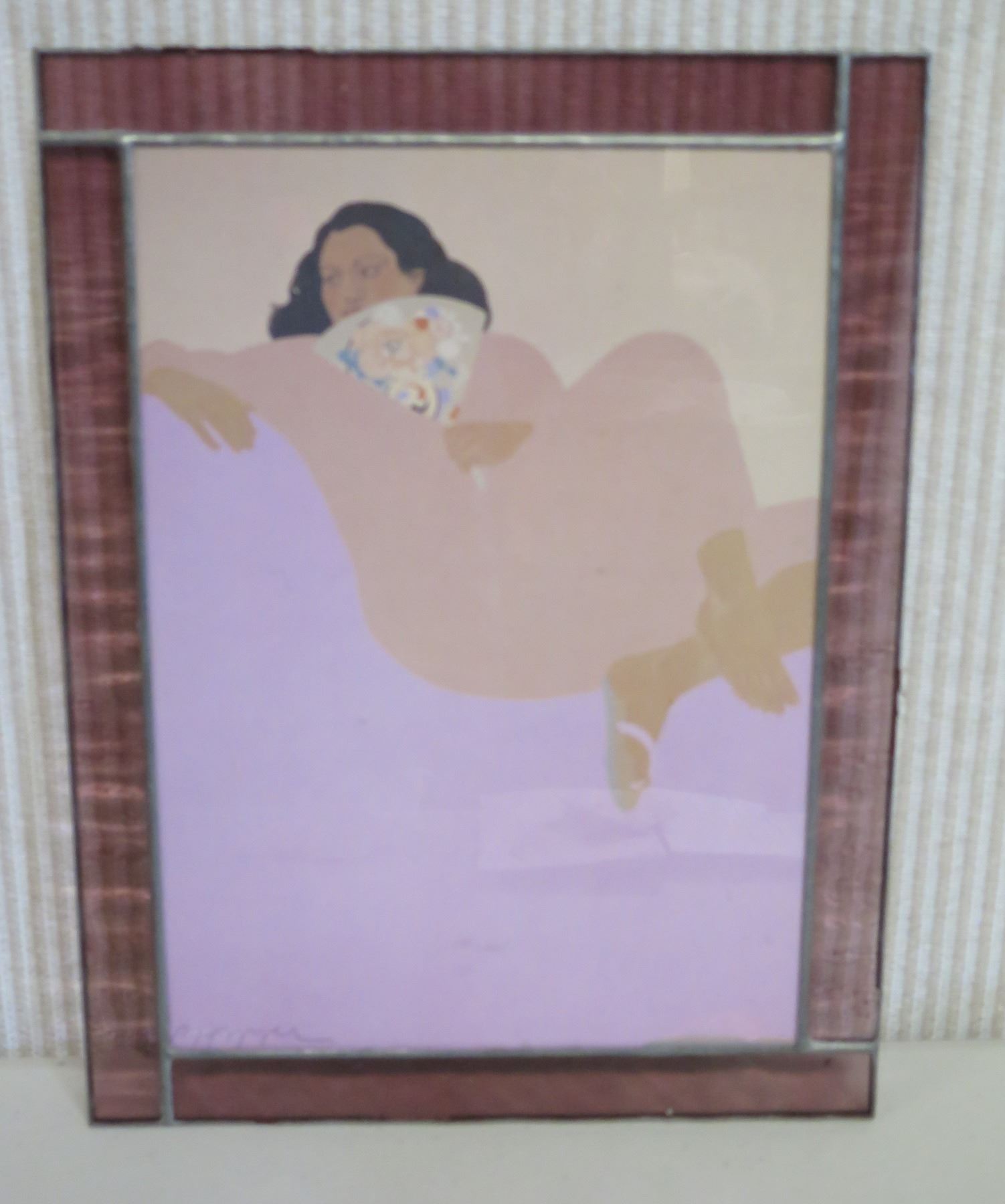 Glass-Framed Print by Pegge Hopper, Original Signature, Woman w/ Fan. Artisan glass frame. 10" x 13.5"