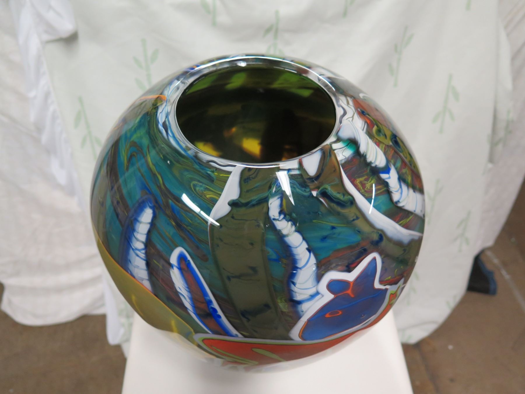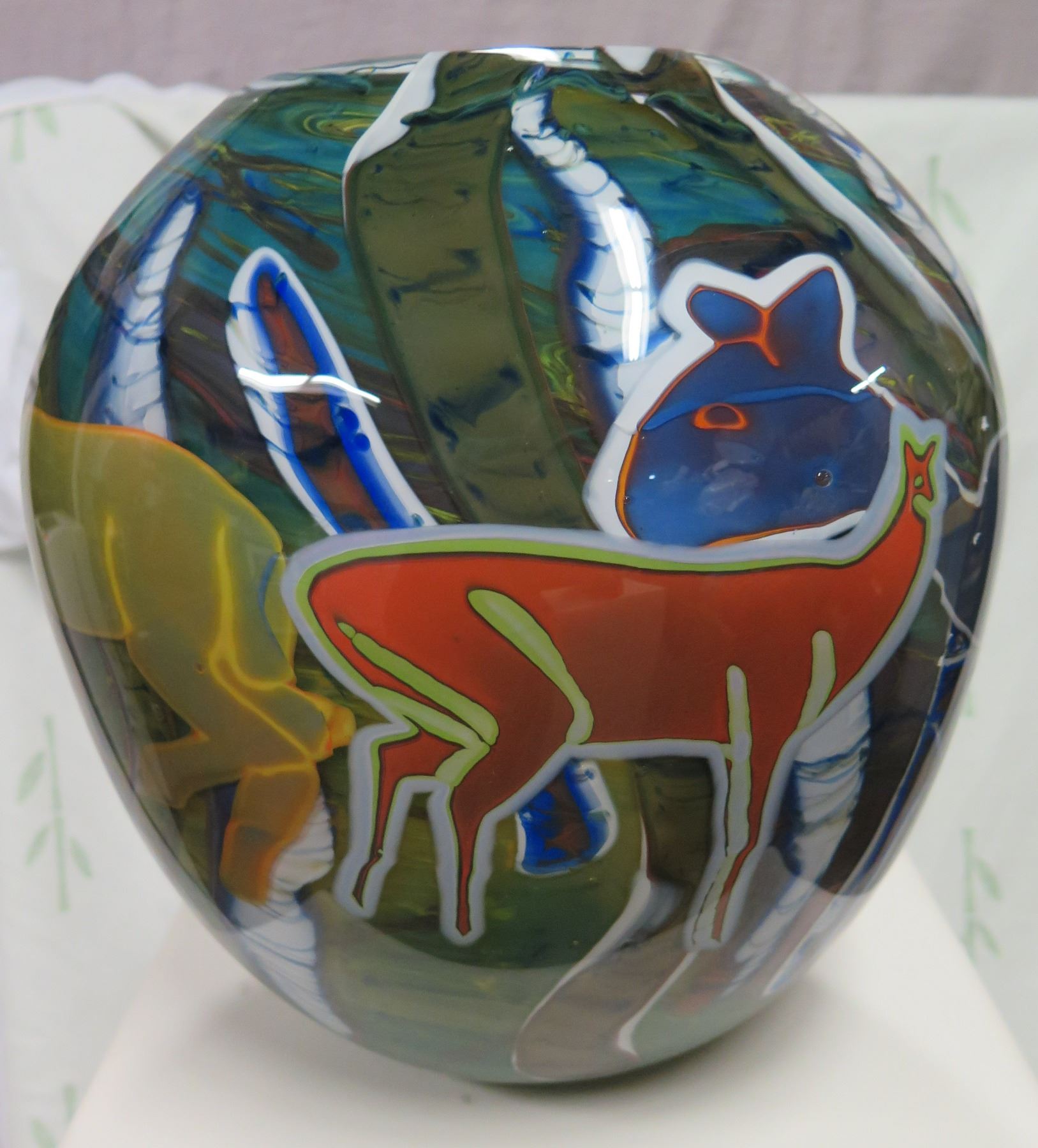 Glass Multicolored Deer Vase by Rick & Valerie Beck, 13" x 12"