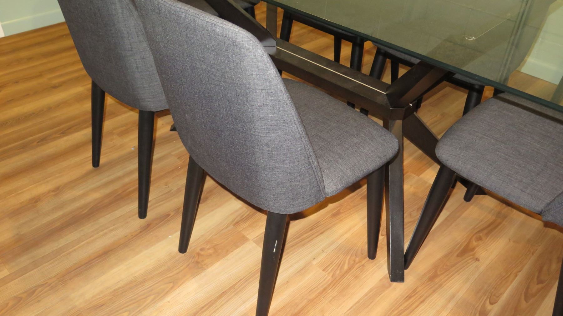 Glass Table (63"x25"x30"H) w/ Upholstered Gray Chairs