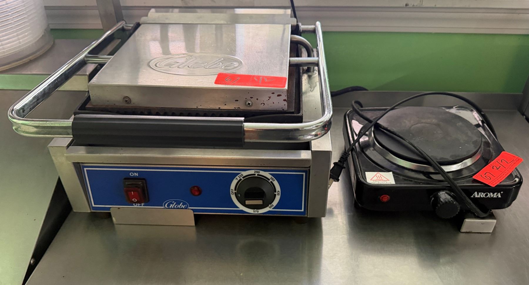 Globe GPG10 Commercial Panini Grill & Aroma Single Burner Hot Plate