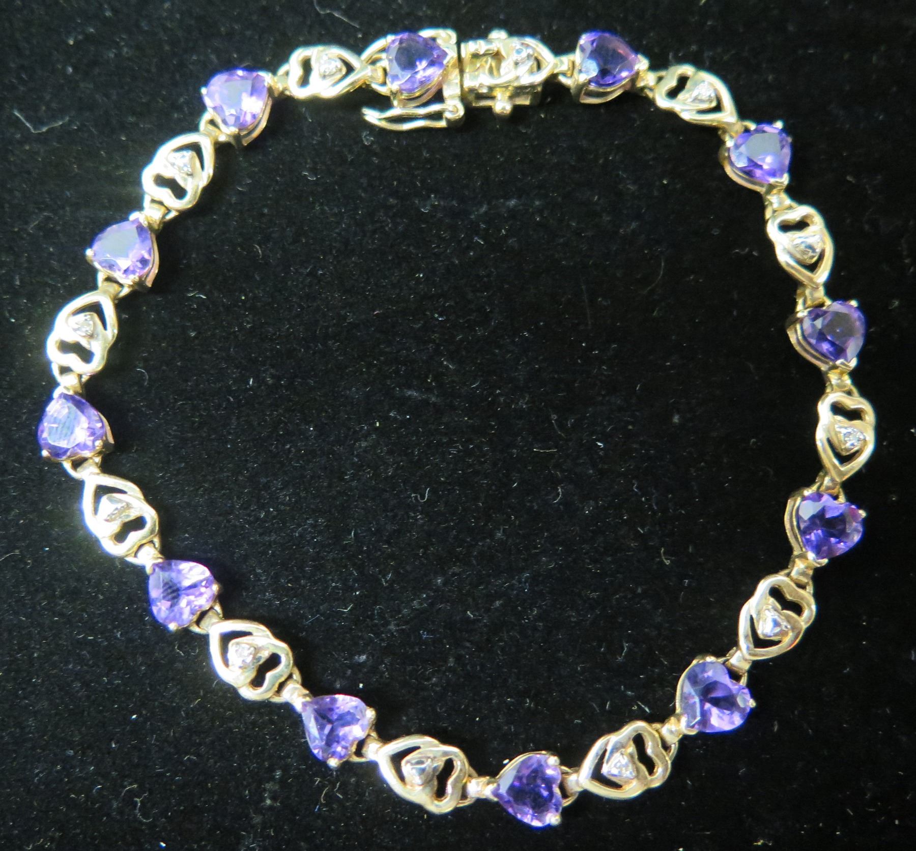 Gold 10K Bracelet w/ Heart Shaped Stones 6.75g (7.5"L)