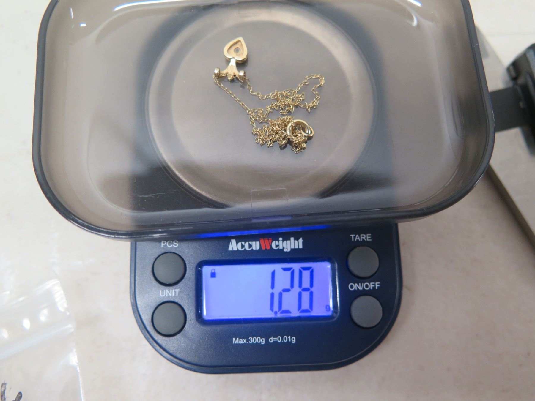 Gold 14K Chain Necklace w/ Heart & Diamond Pendant 1.28g