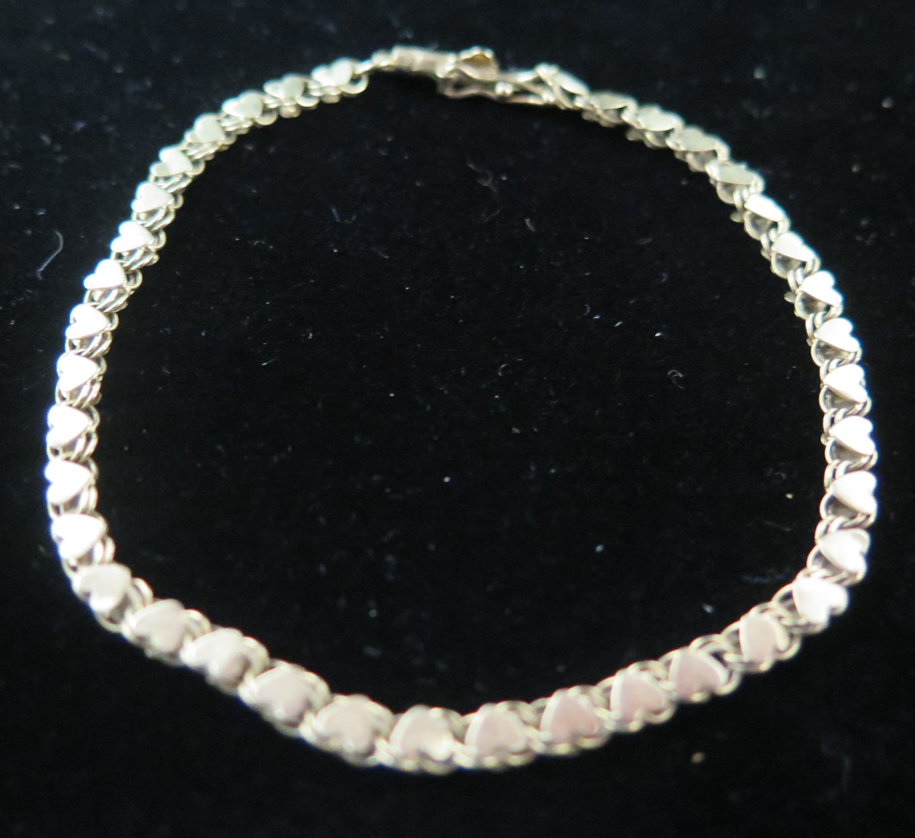 Gold 14K Hearts Chain Bracelet 3.38g (7"L)