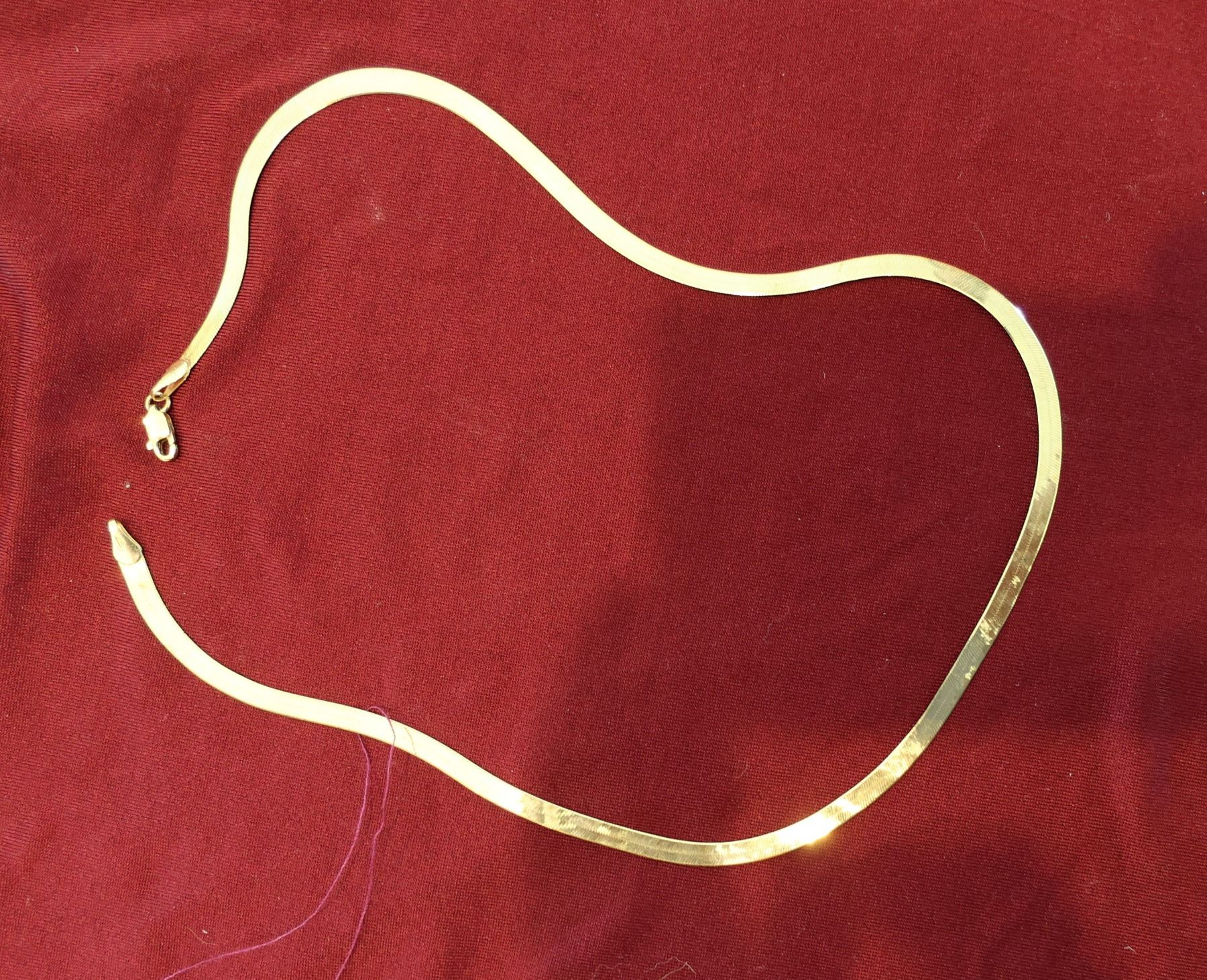 Gold 14k Herringbone Chain Necklace 18"L, 6.3 grams
