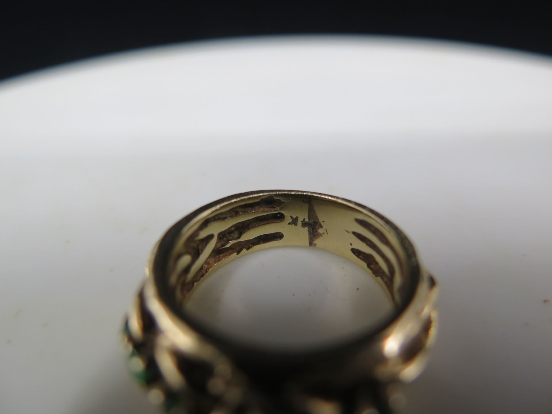 Gold 14k Woven Design Ring w/ Green Stones Size 5.5, Wt 6.94 grams