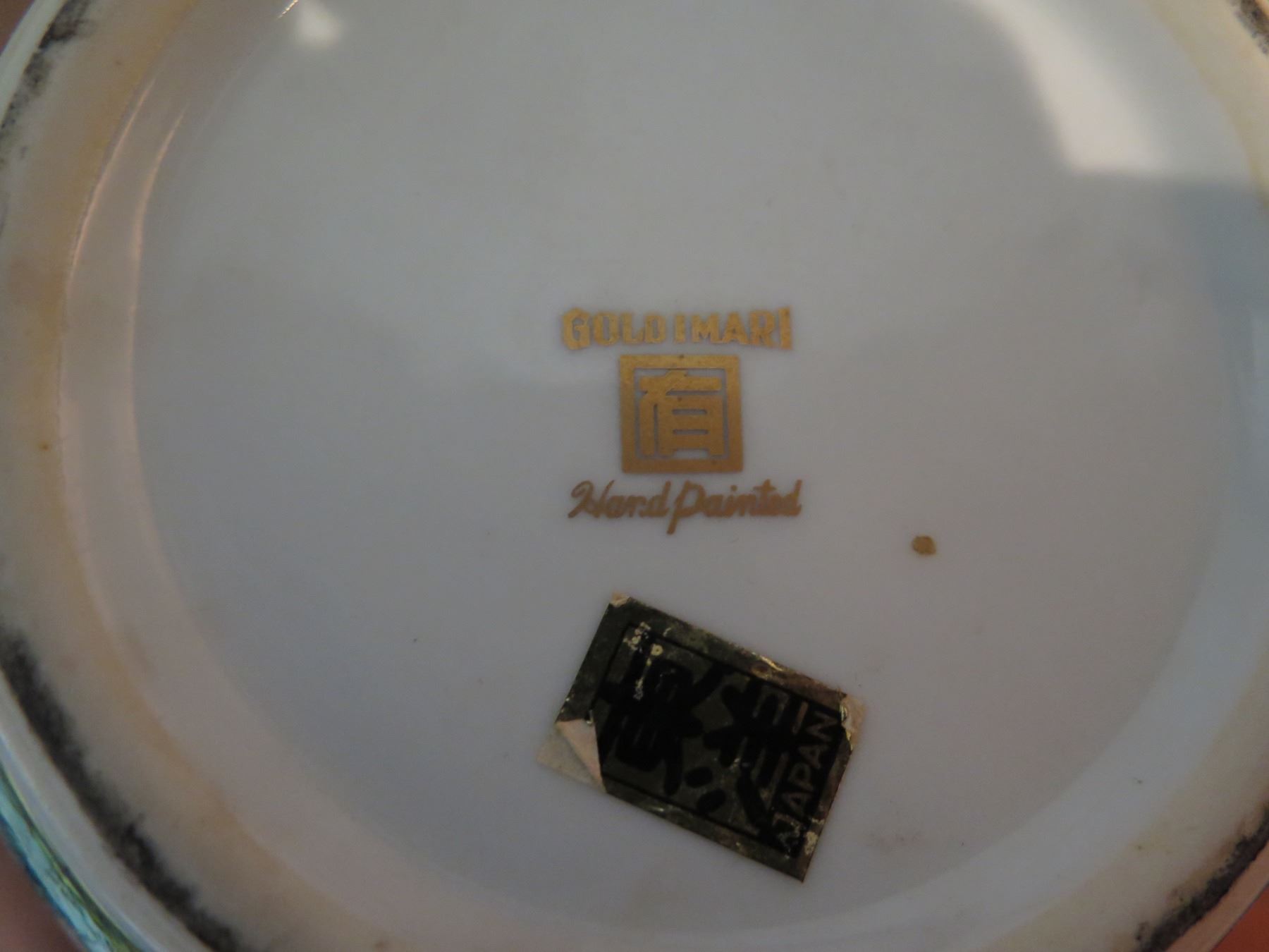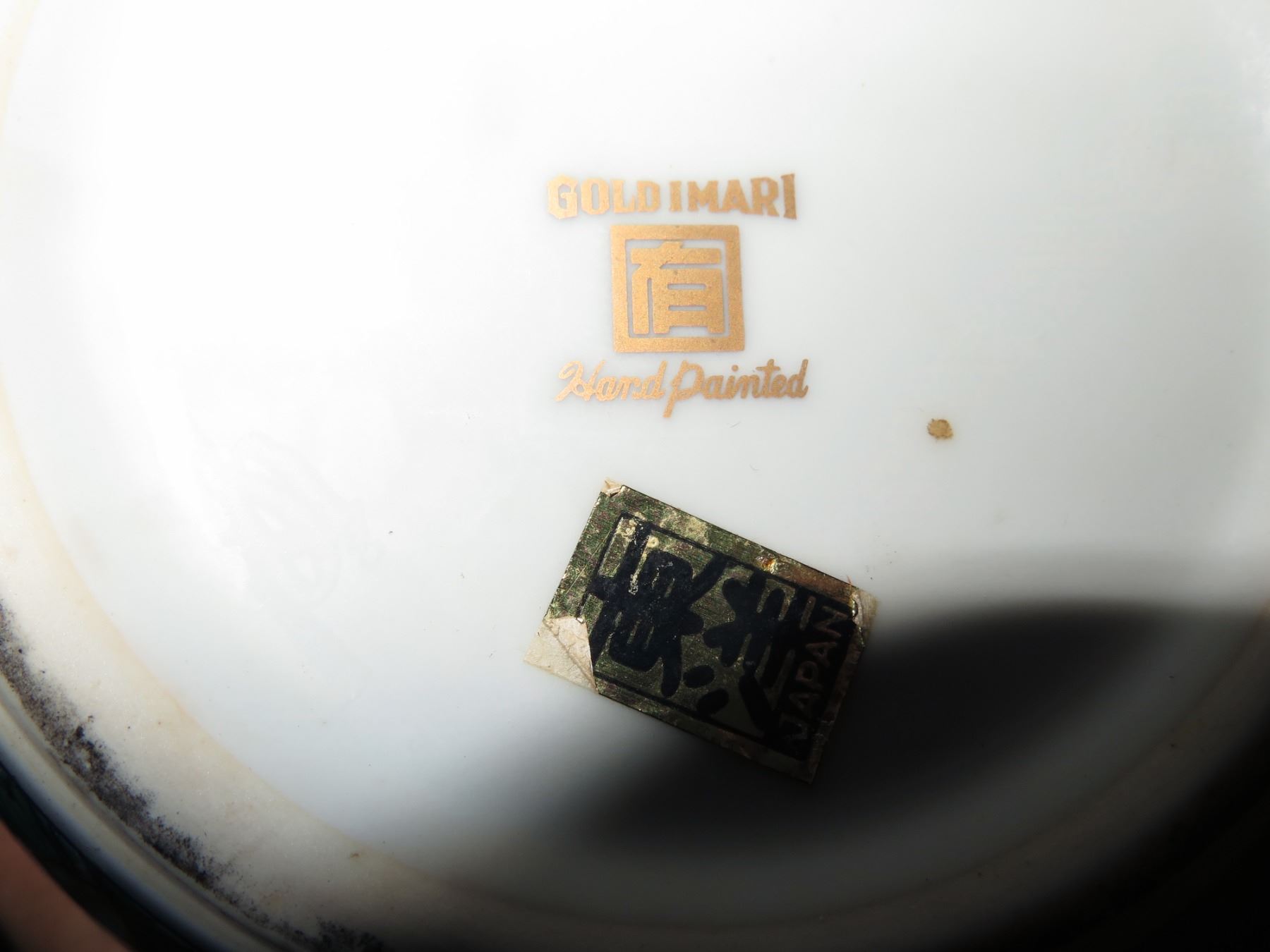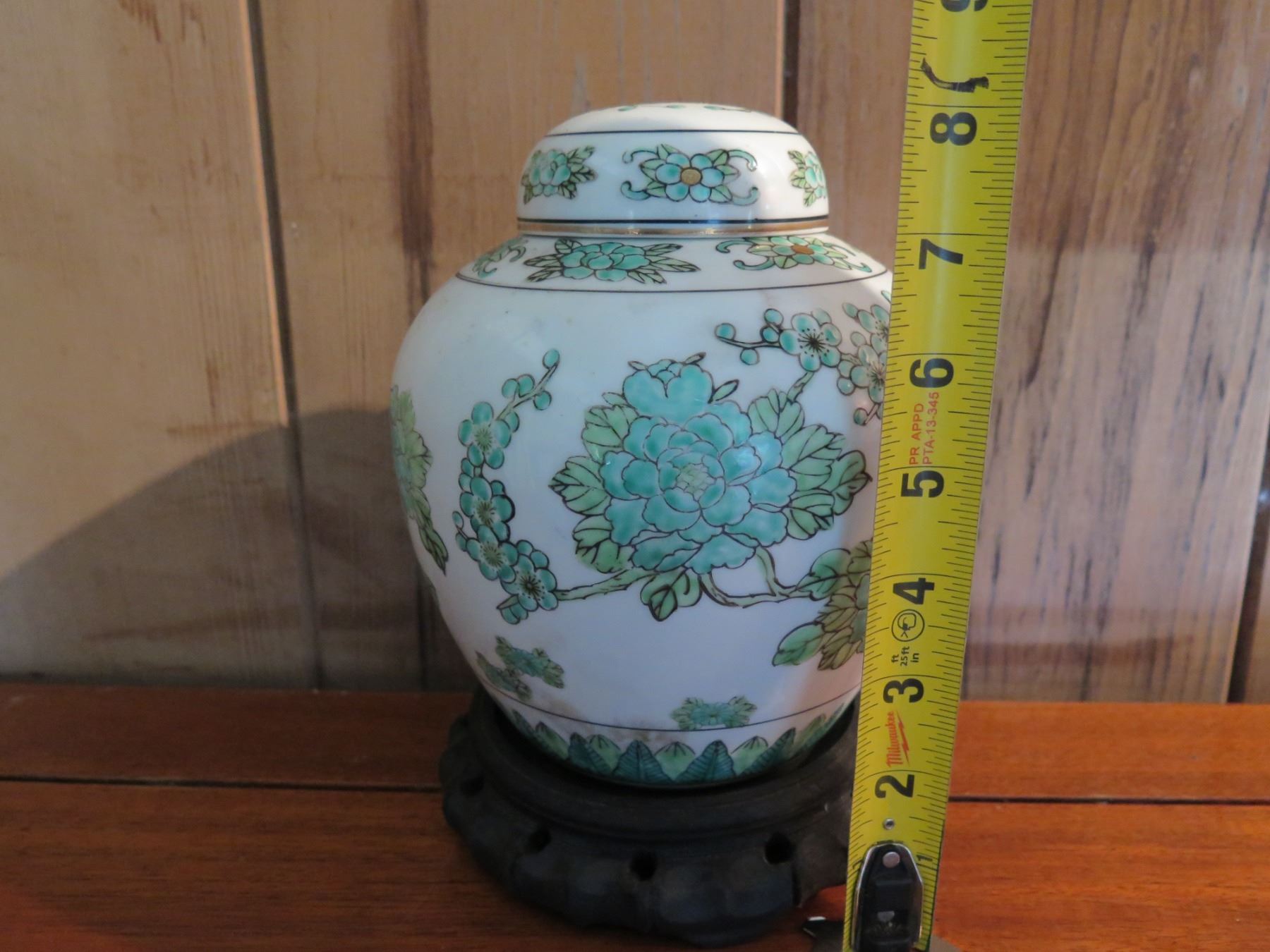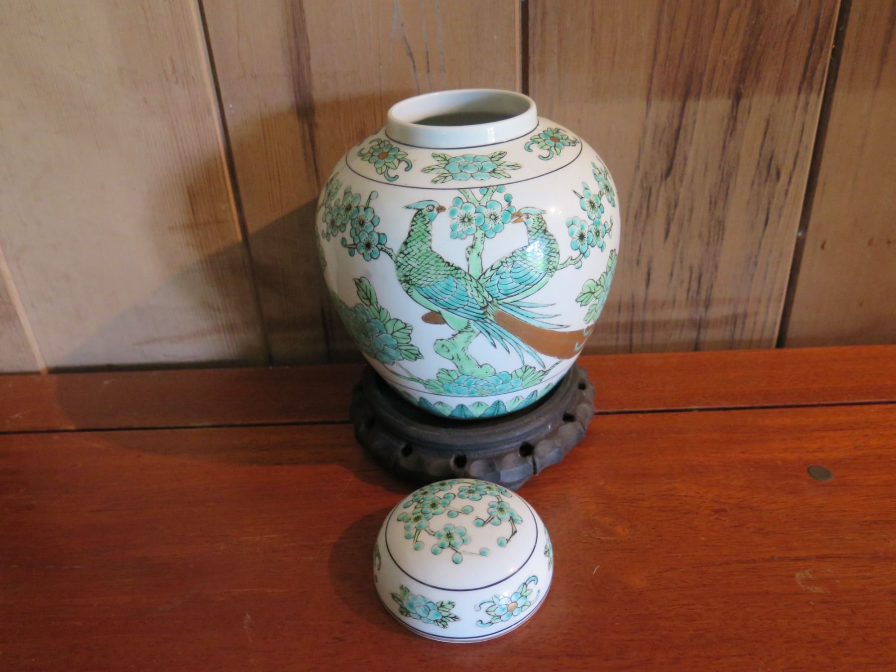 Goldimari Hand Painted Ginger Jar w/ Wood Stand, 8"Tall