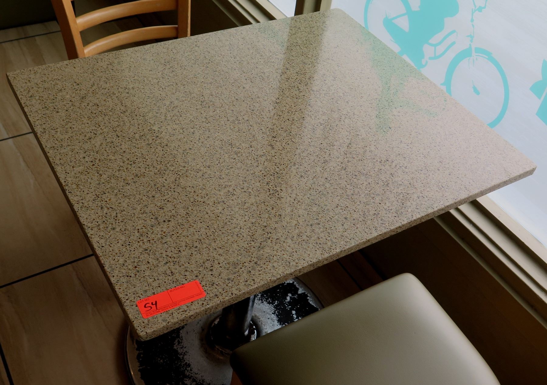 Granite Sand Color Table w/Metal Base (24" x 30 x 29.5" H) & Two Waymar Chairs.