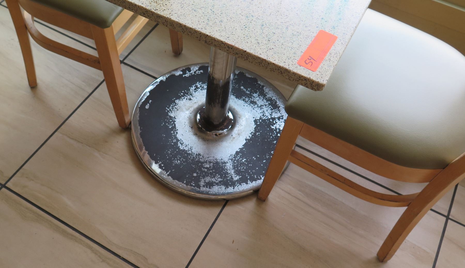 The first photo is a stock photo to convey the true color of the table. The rest of the pictures are of the “actual” table and chairs in this lot. Please look at these pictures closely to see the variations in wear and tear. Some tables may have chipping along the edges of the table. Or better yet, come down and take a look at these in person if you plan on bidding on these.