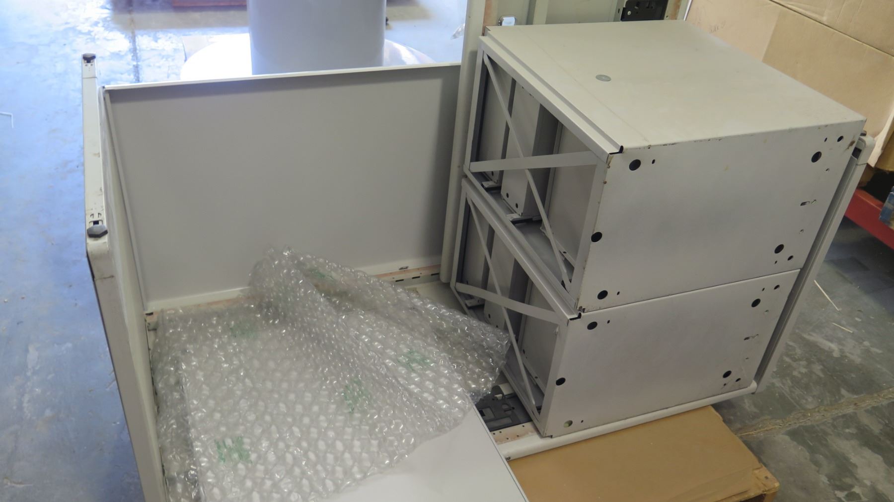 Gray Metal Desk w/ File Cabinet Drawer, Partly Assembled
