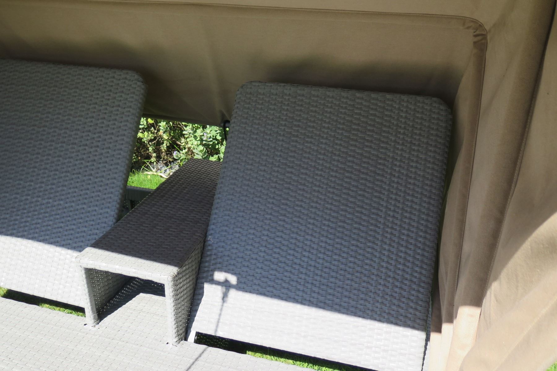 Gray Poolside Lounger for Two w/ Canopy 69  x 84  x 55 H Woven Synthetic Material