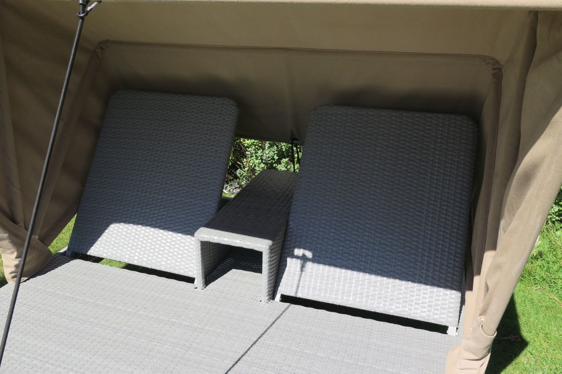 Gray Poolside Lounger for Two w/ Canopy 69  x 84  x 55 H Woven Synthetic Material