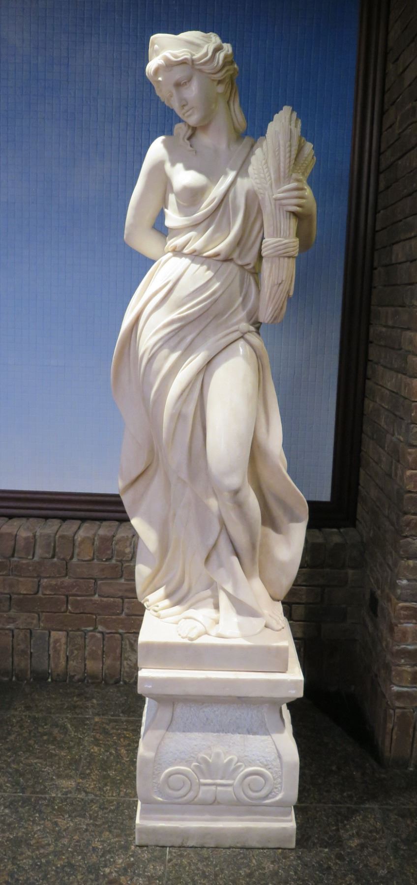 Greco-Roman Statue, Goddess of the Harvest, on Base, Solid Marble 17" x 17" x 85"H. Base only is 20"H, Statue only is 65"H.