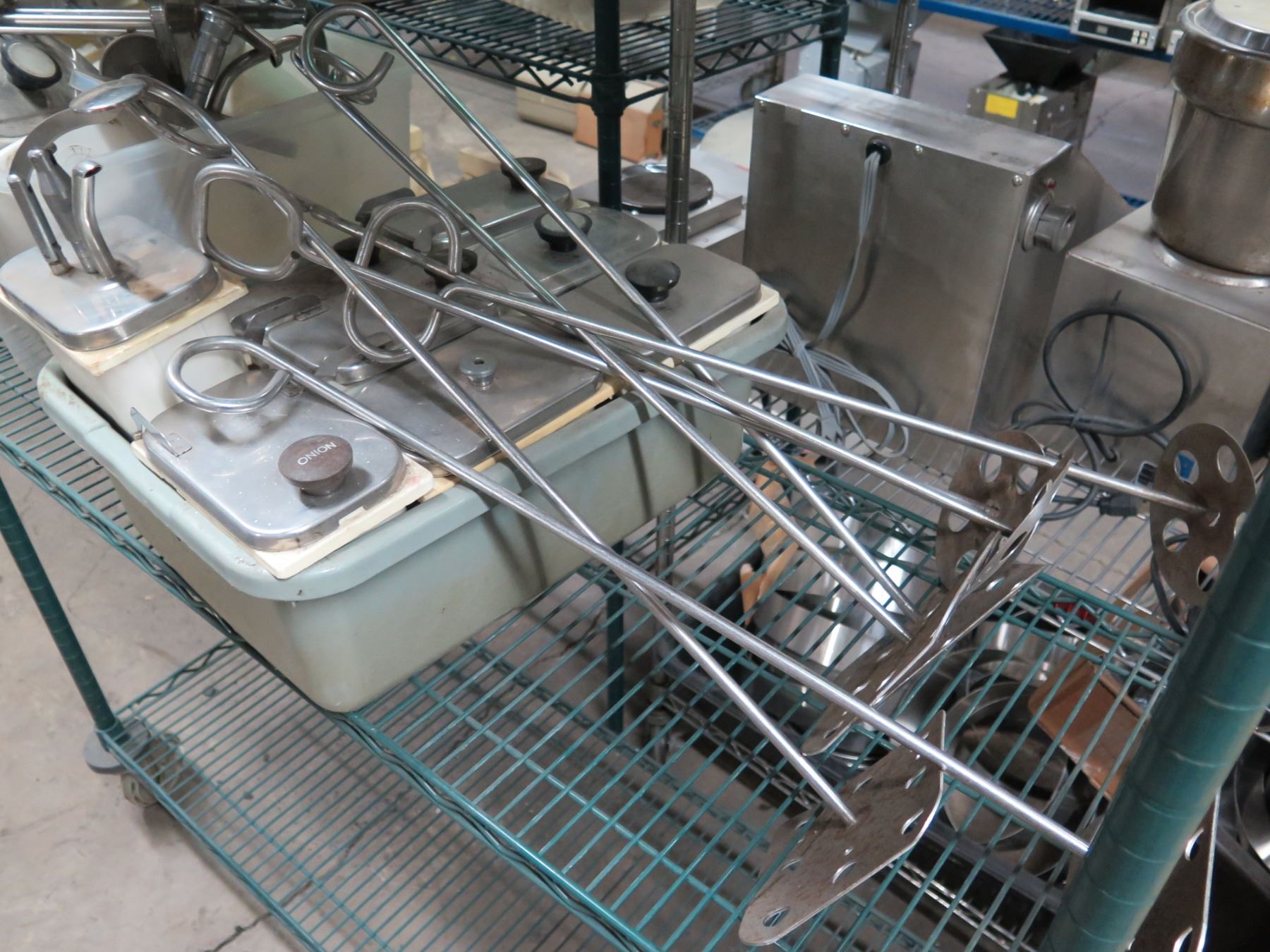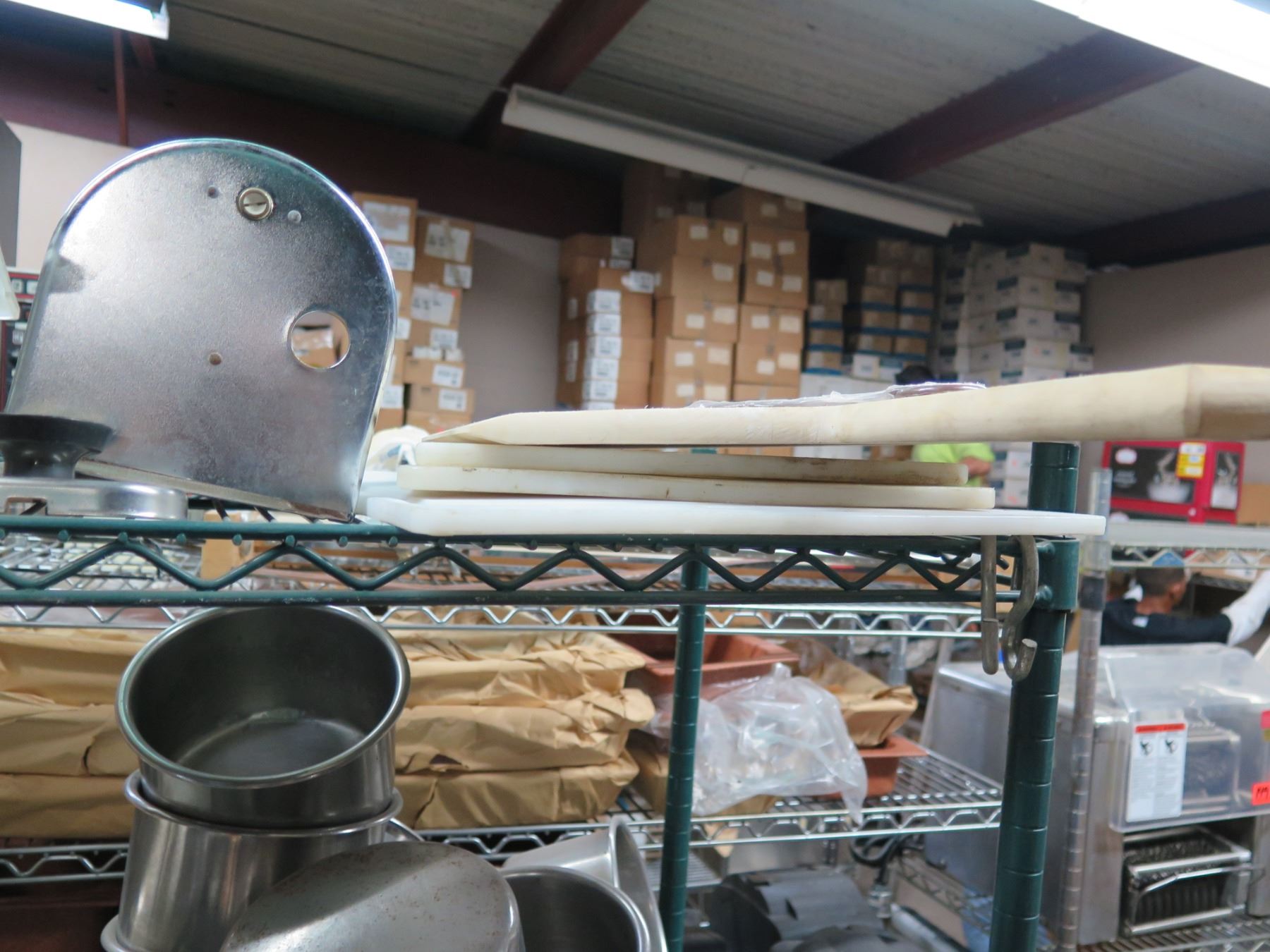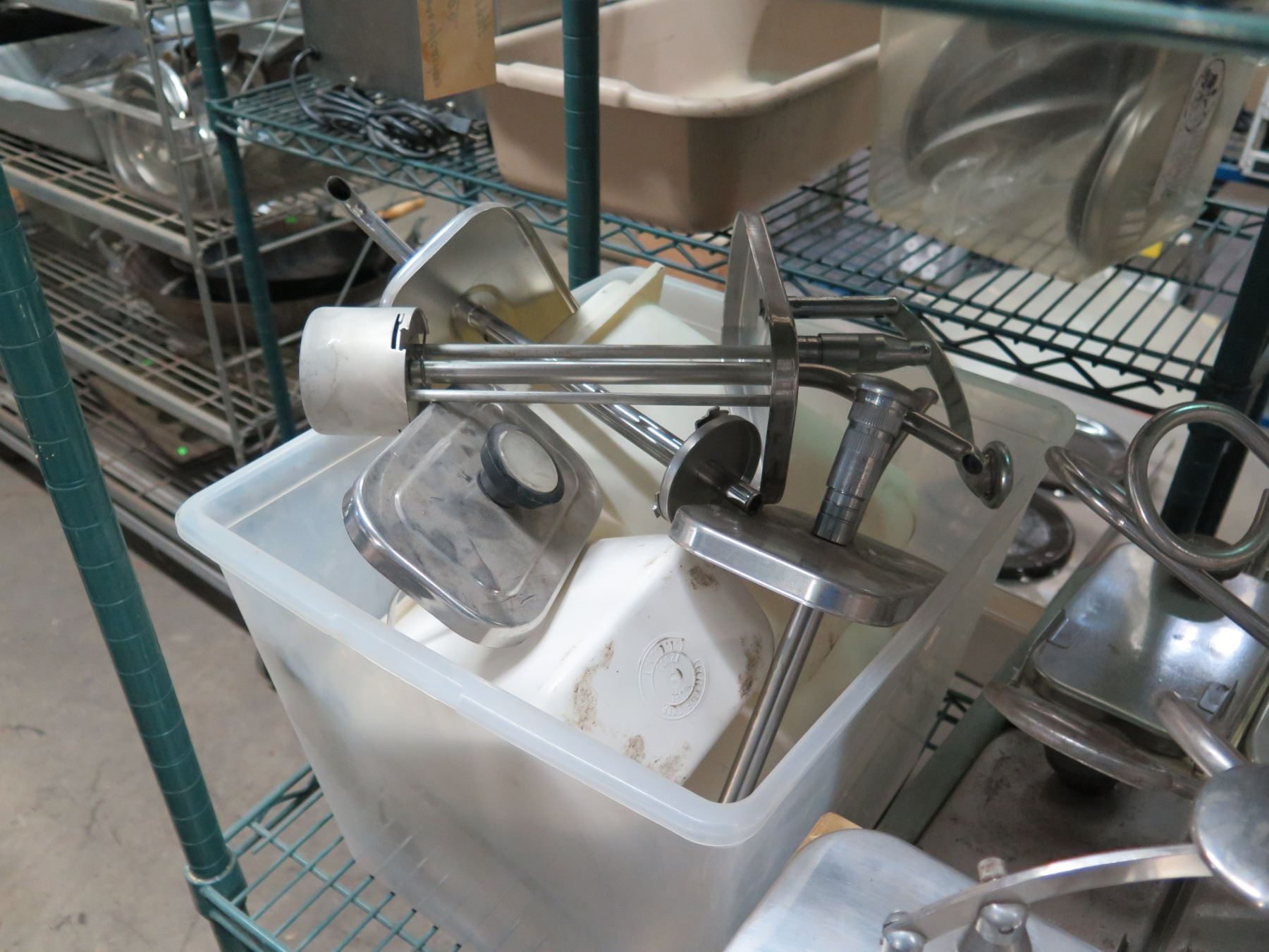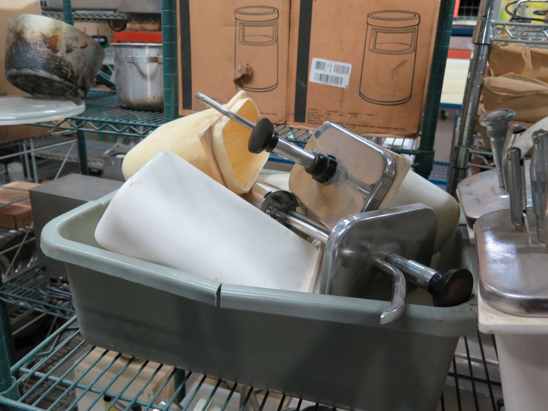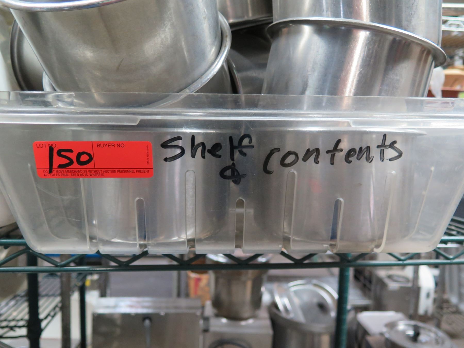 Green Metal Wire Shelving Unit & Contents: Pots, Ice Cream Topping Dispenser, etc
