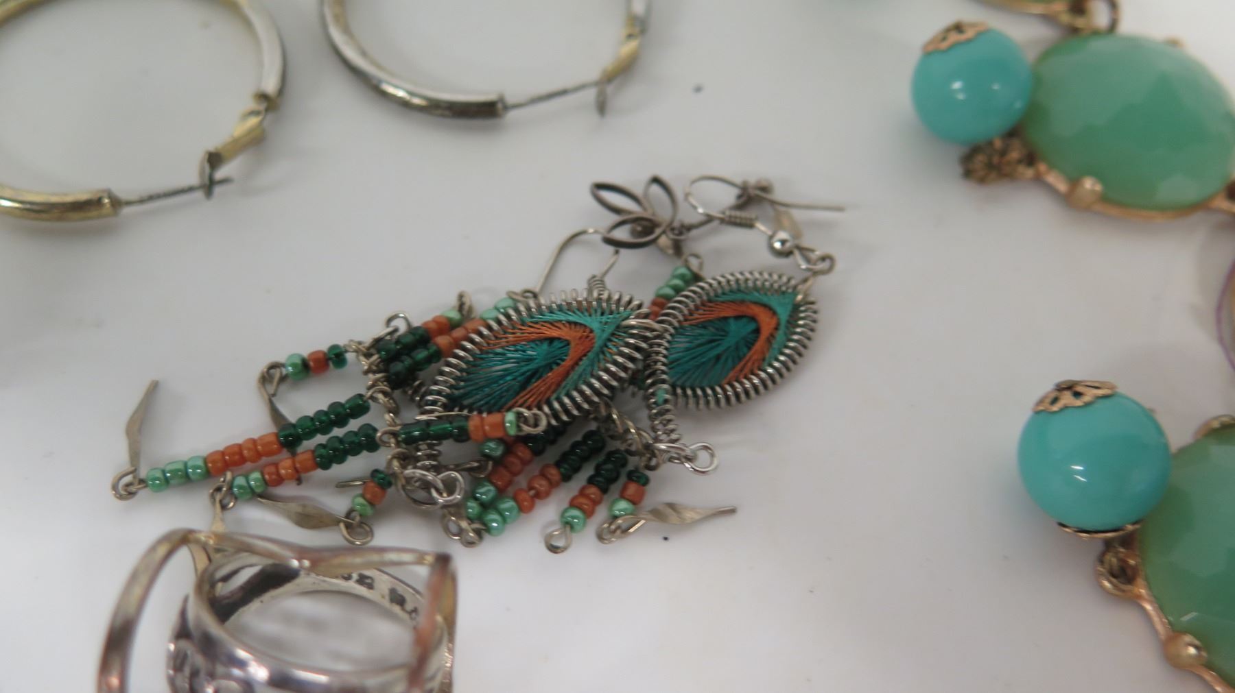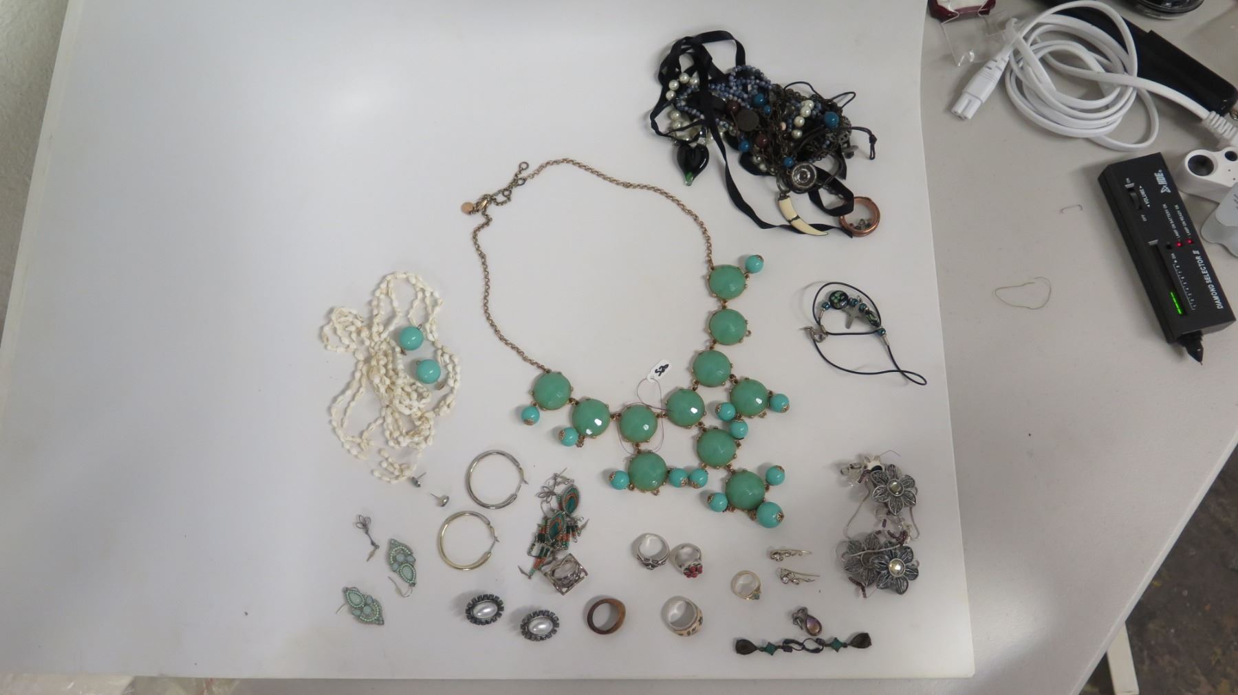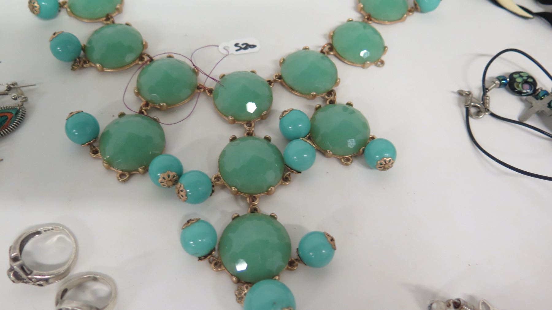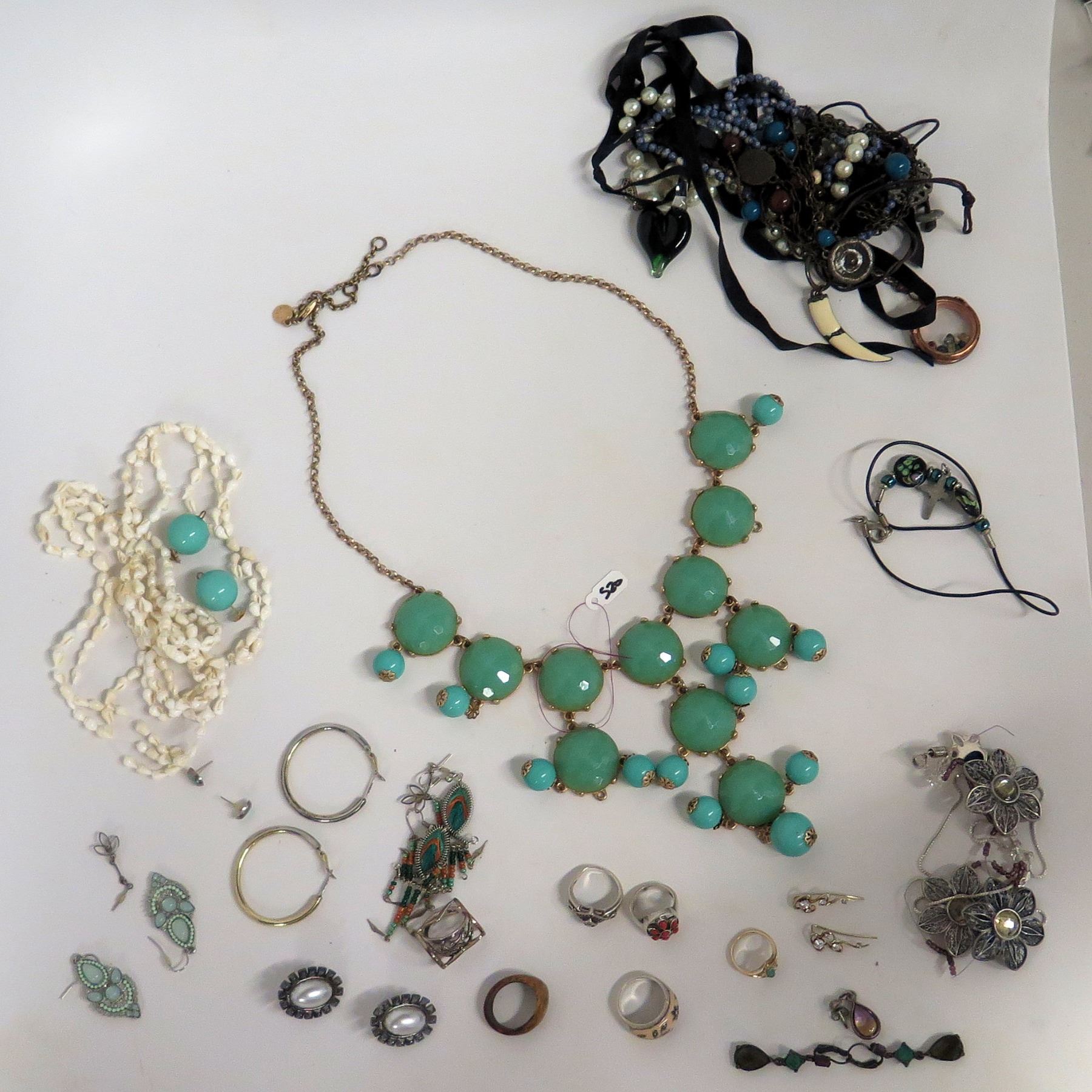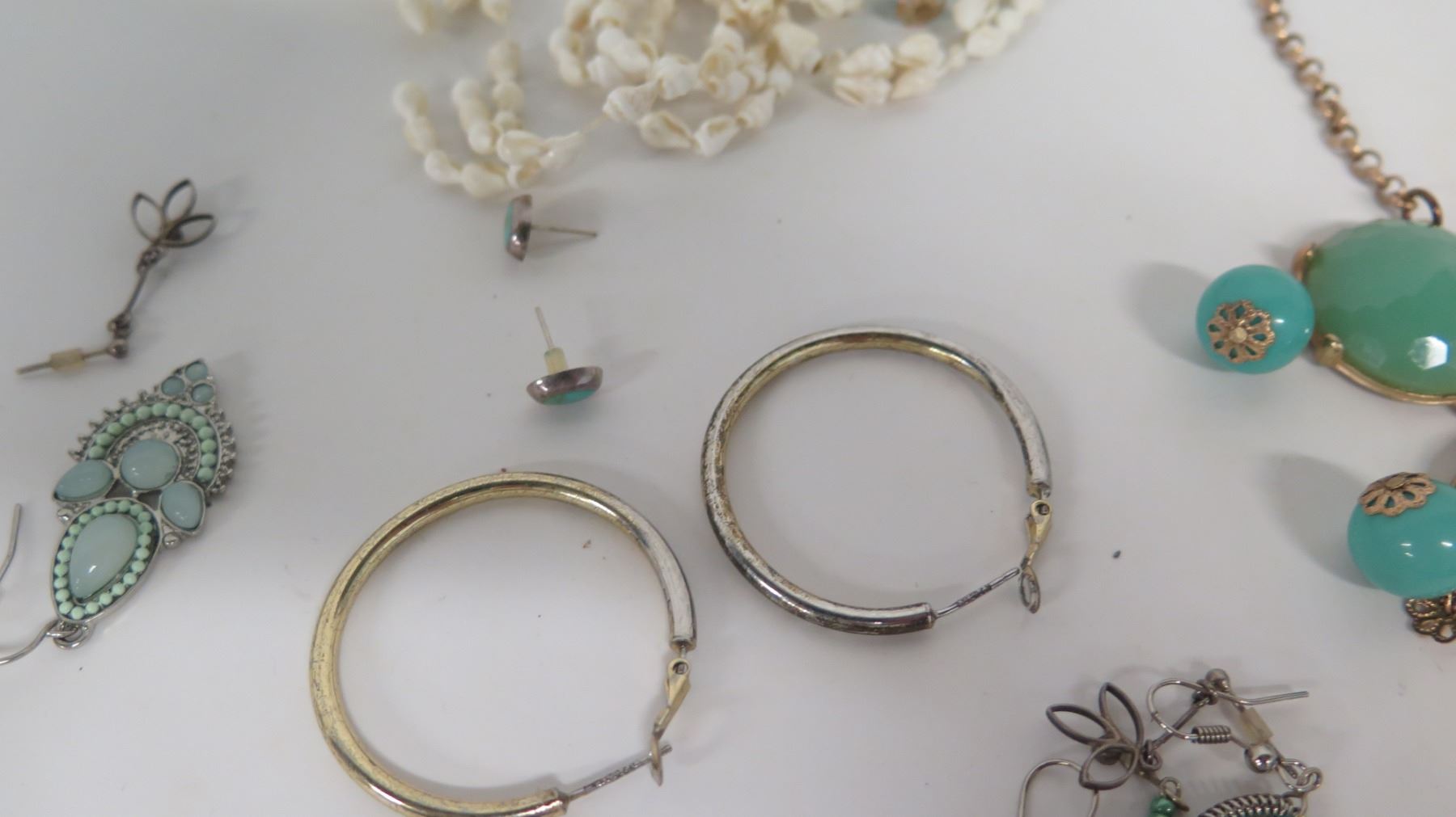 Green Stone Necklace, Shell Necklace, Misc Earrings & Rings