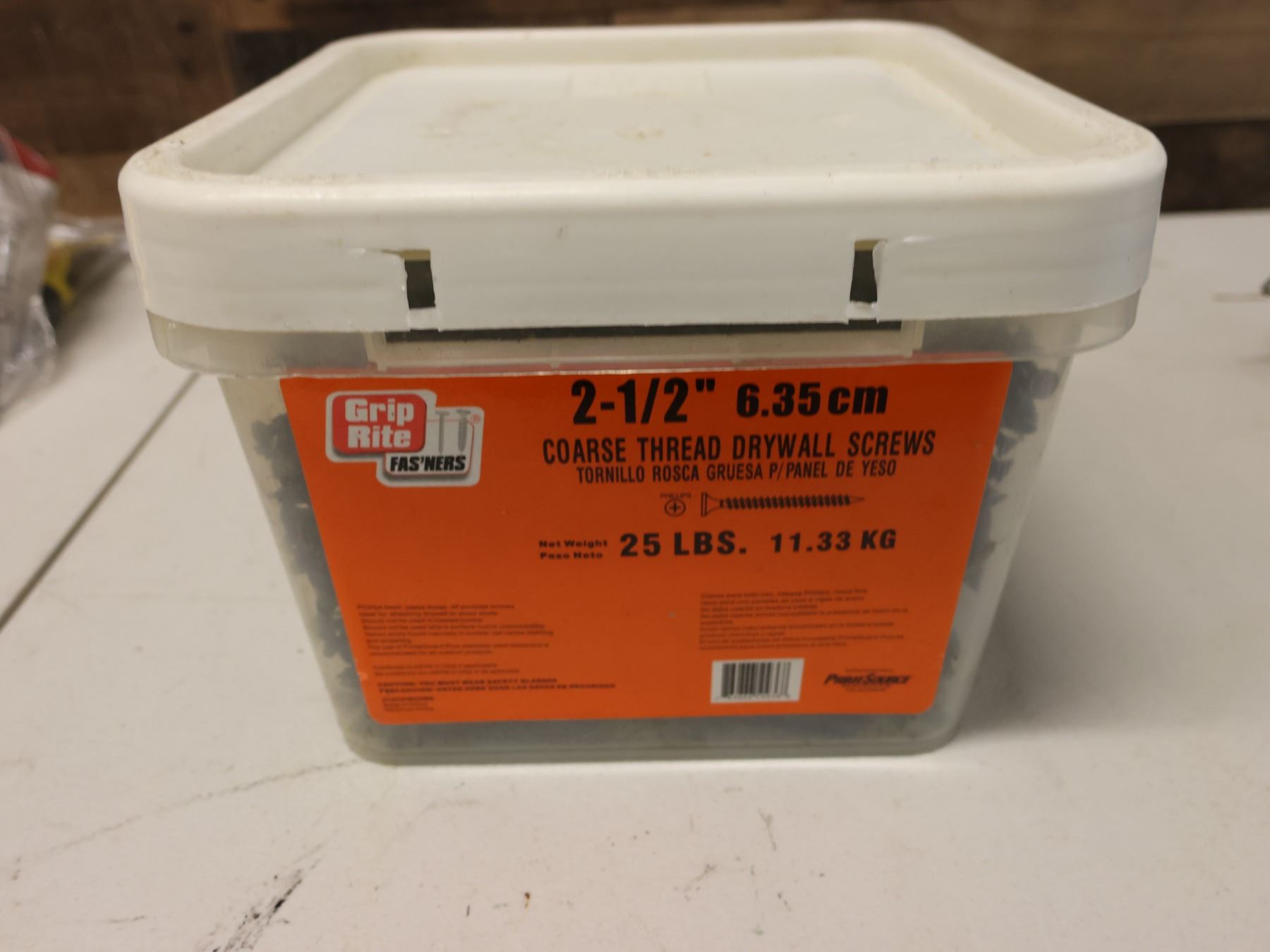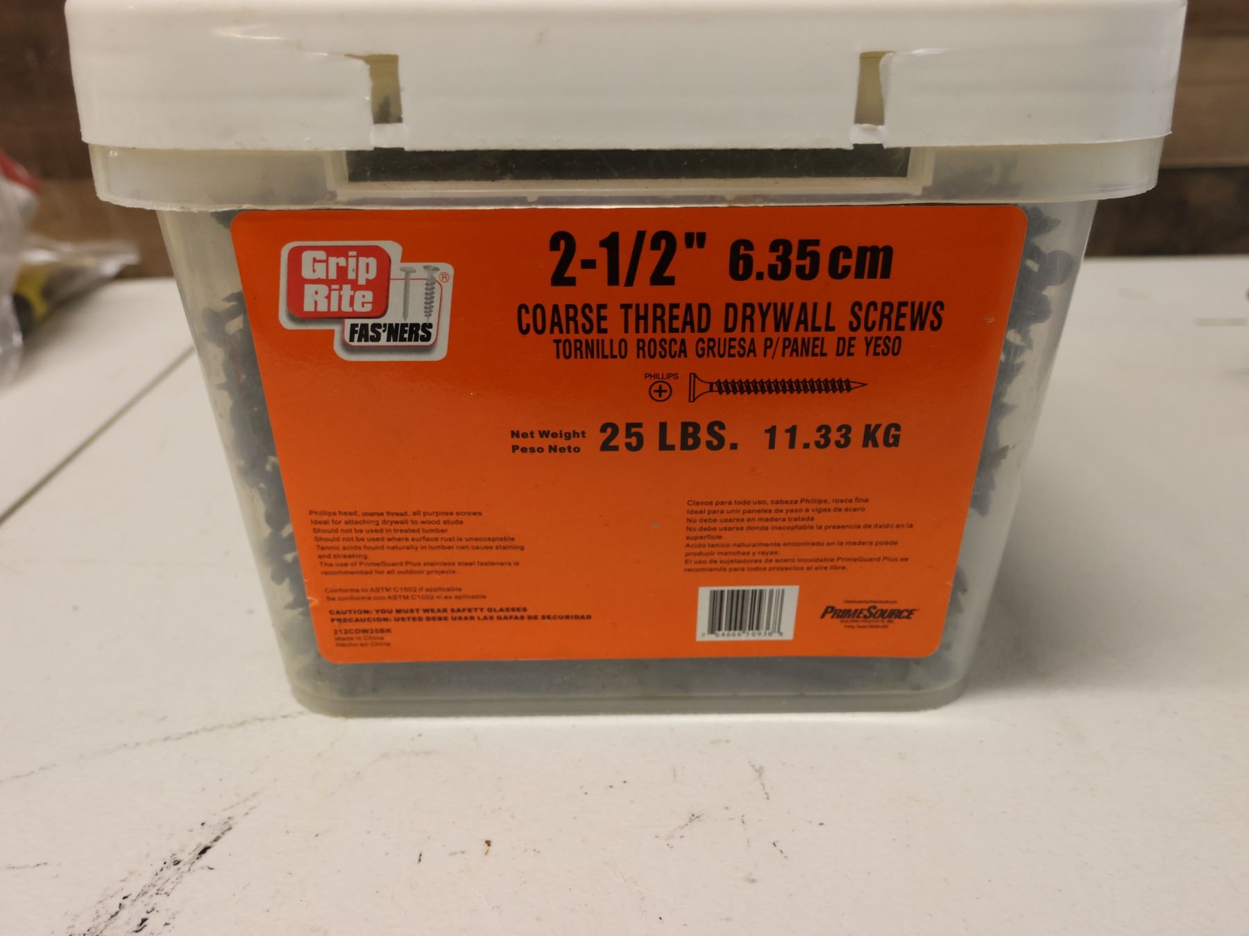 Grip Rite 2-1/2" Coarse Thread Drywall Screws in 25 Lb. Bin
