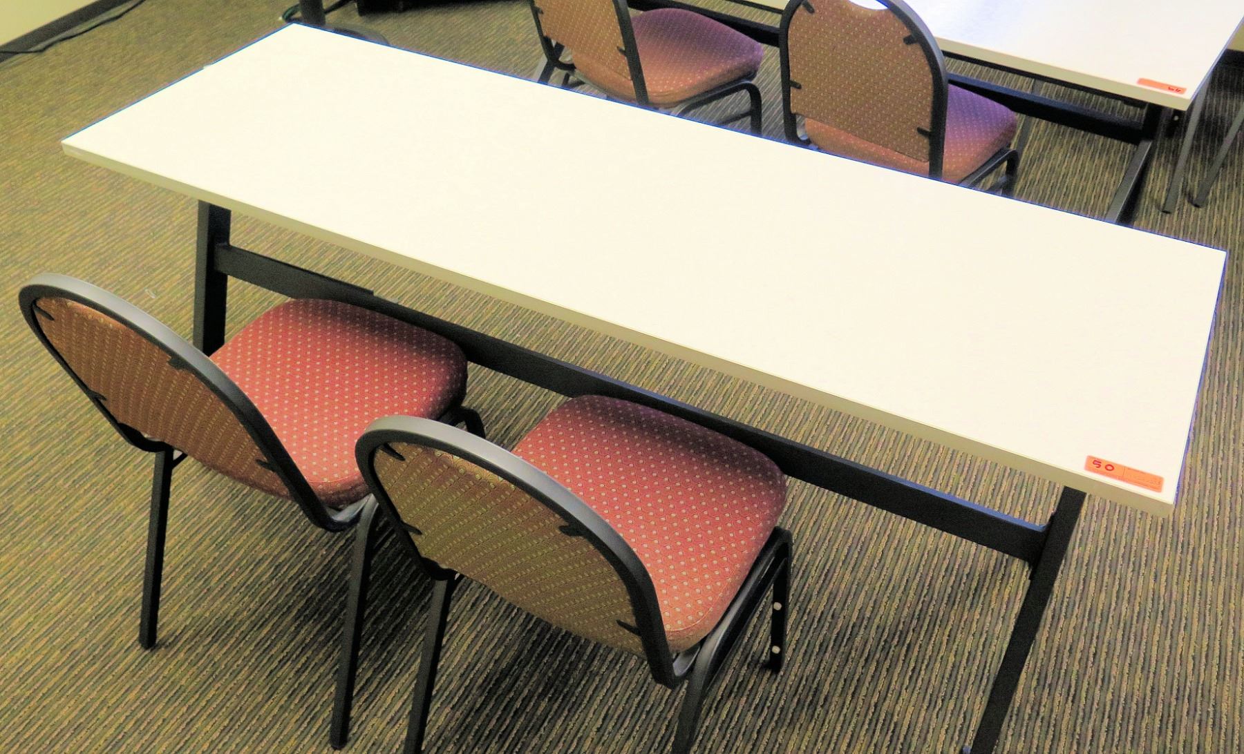 HON Basyx Folding Utility Table (Desk) w/ Wheels 71" x 24" x 29.5"H & 2 Chairs. Buyer will be responsible for disassembling and removing all purchased items in this auction. Buyer must bring own tools, carts, etc. Loadout Thursday, May 9 to Saturday May 11. Detailed directions to building’s loading zone and designated load-out areas will be provided.