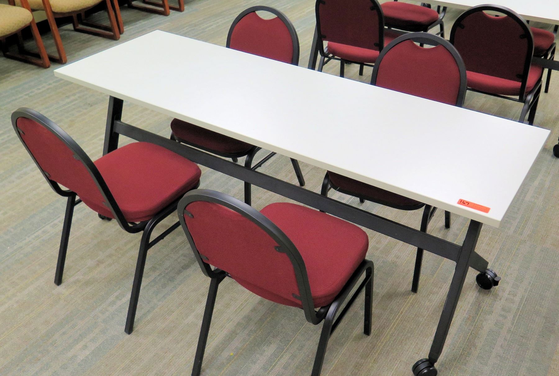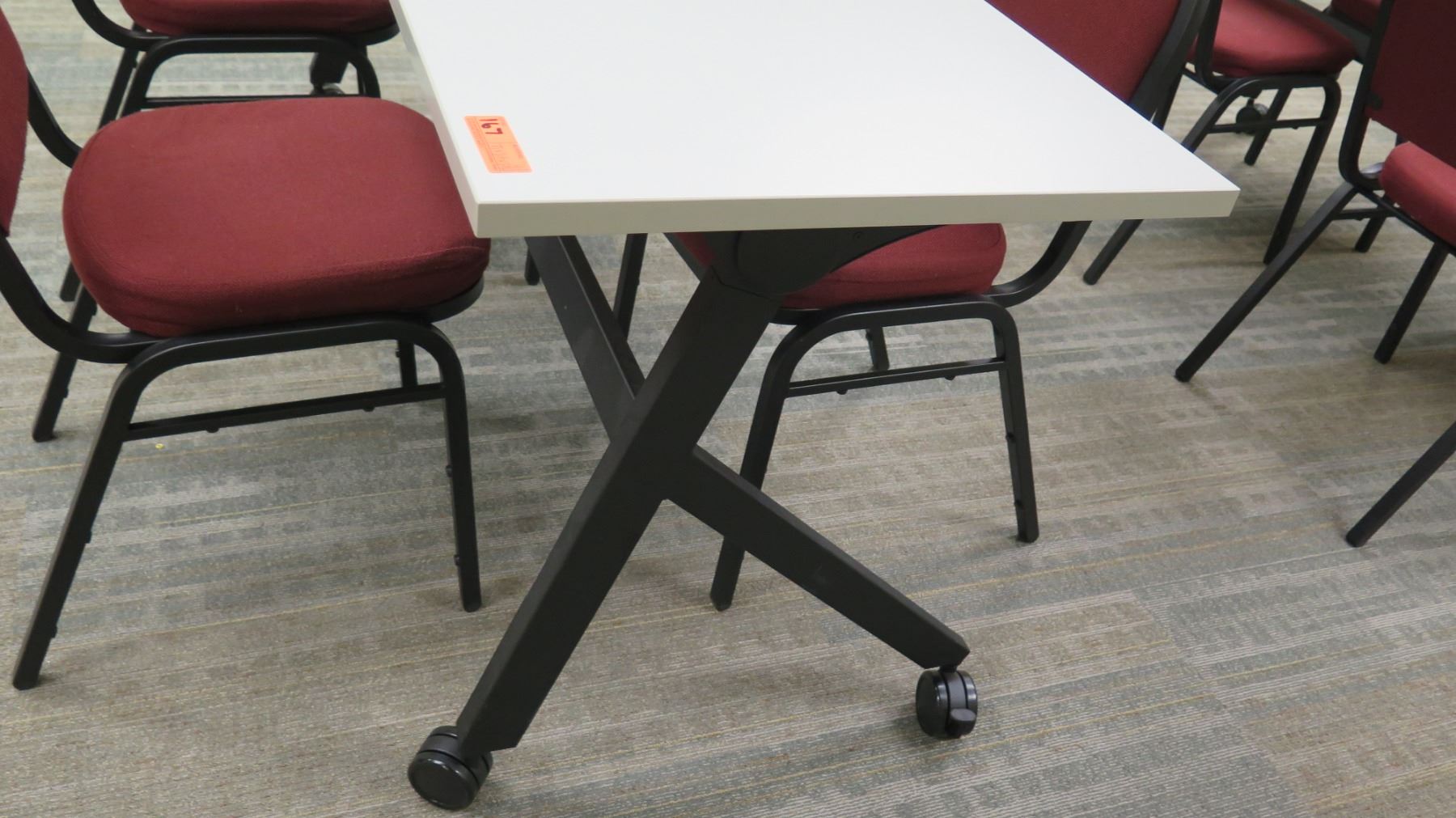 HON Basyx Folding Utility Table (Desk) w/ Wheels 71" x 24" x 29.5"H & 4 Chairs. Buyer will be responsible for disassembling and removing all purchased items in this auction. Buyer must bring own tools, carts, etc. Loadout Thursday, May 9 to Saturday May 11. Detailed directions to building’s loading zone and additional designated load-out areas will be provided.