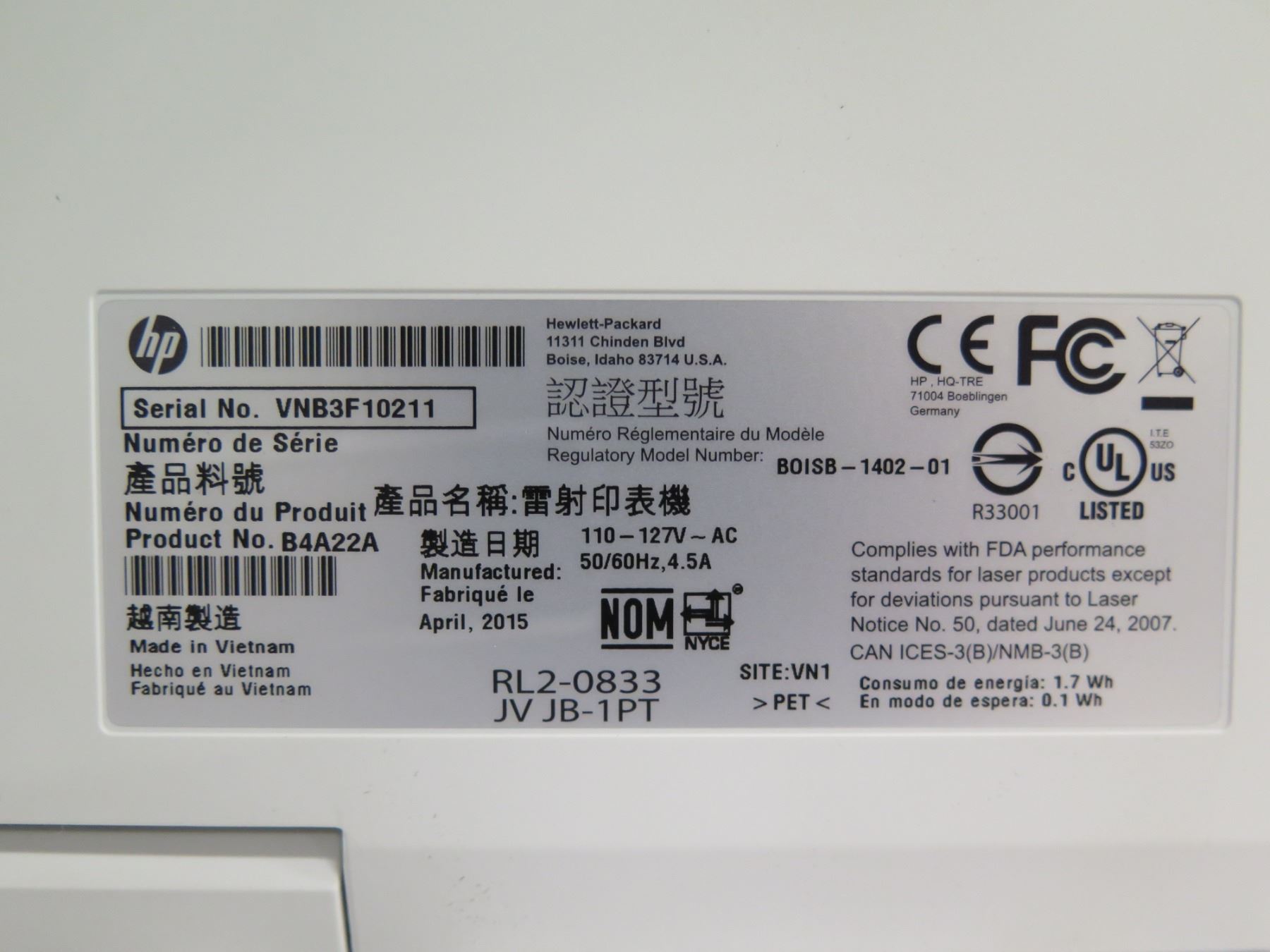 HP Color Laser Jet Pro Printer Model M252dw