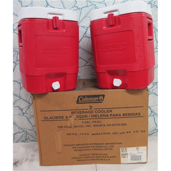 Box of 2 Coleman 2PO7375 Beverage Coolers 5 Gal