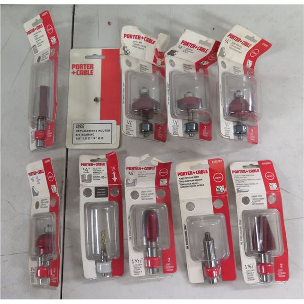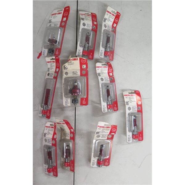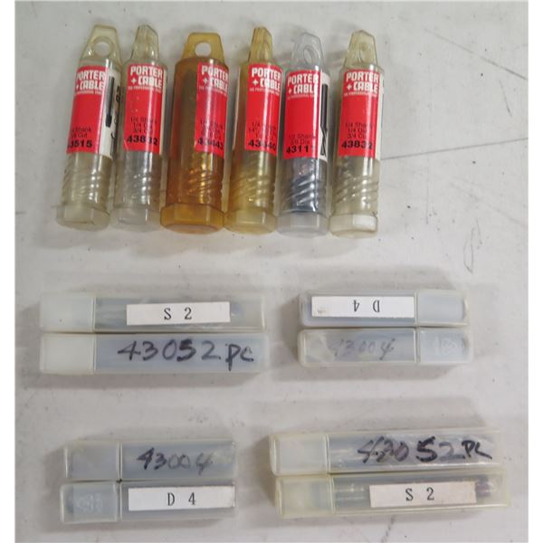 Qty 10 Porter Cable 43768PC Router Bits, 44039PC Laminate Flush Trim Bits, etc