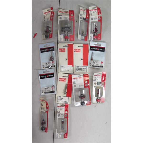 Qty 11 Porter Cable 43416PC Beading Router Bits, 43731PC Laminate Trimming Bits, etc
