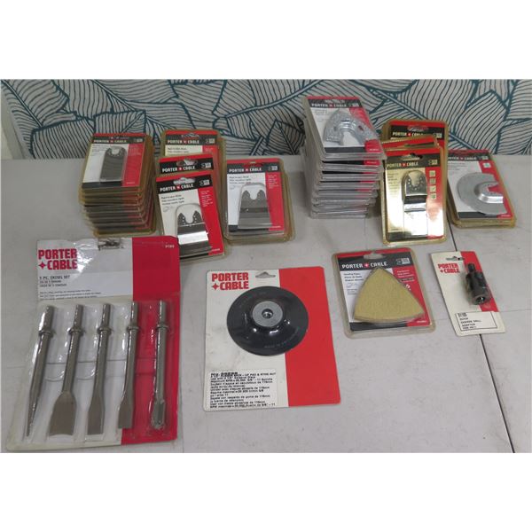 Misc Tools: Porter Cable Chisel Set, Scraper Blades, Carbide Rasp, Plunge Cut Blade, etc