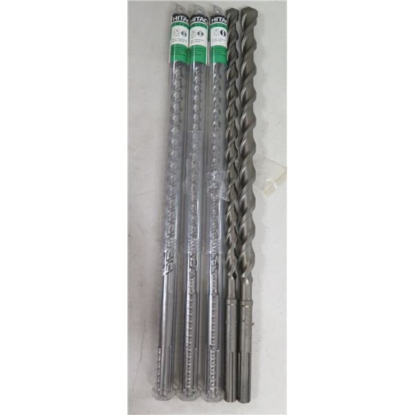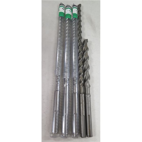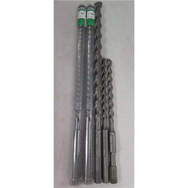 Qty 3 Hitachi Rotary Hammer Drill Bits & 2 Loose Relton Bits Misc Size