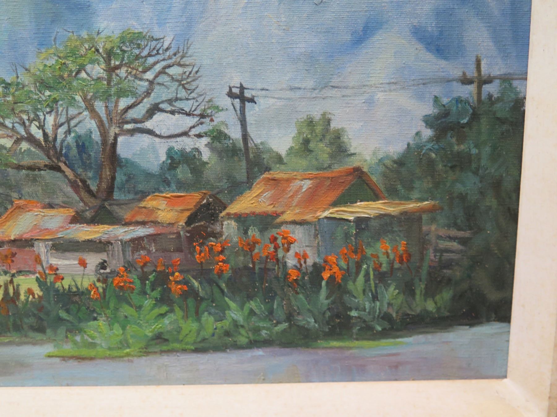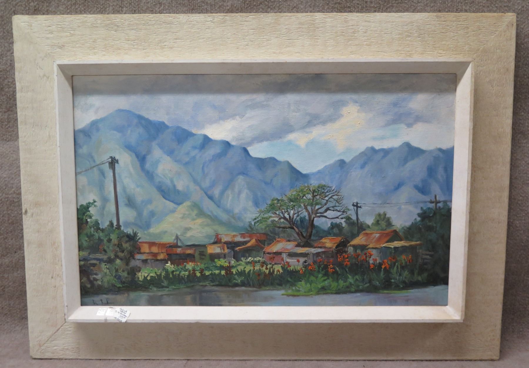 Haleiwa Shanties Artwork Signed by Artist K. Brickman, in White Frame 31"x22"