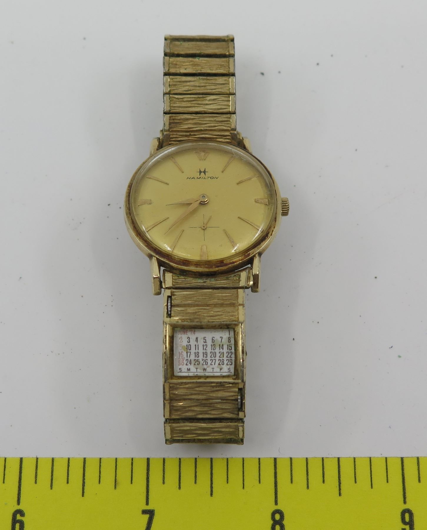 Hamilton Watch w/ Bezel Stainless Back & Calendar on Flex Band.