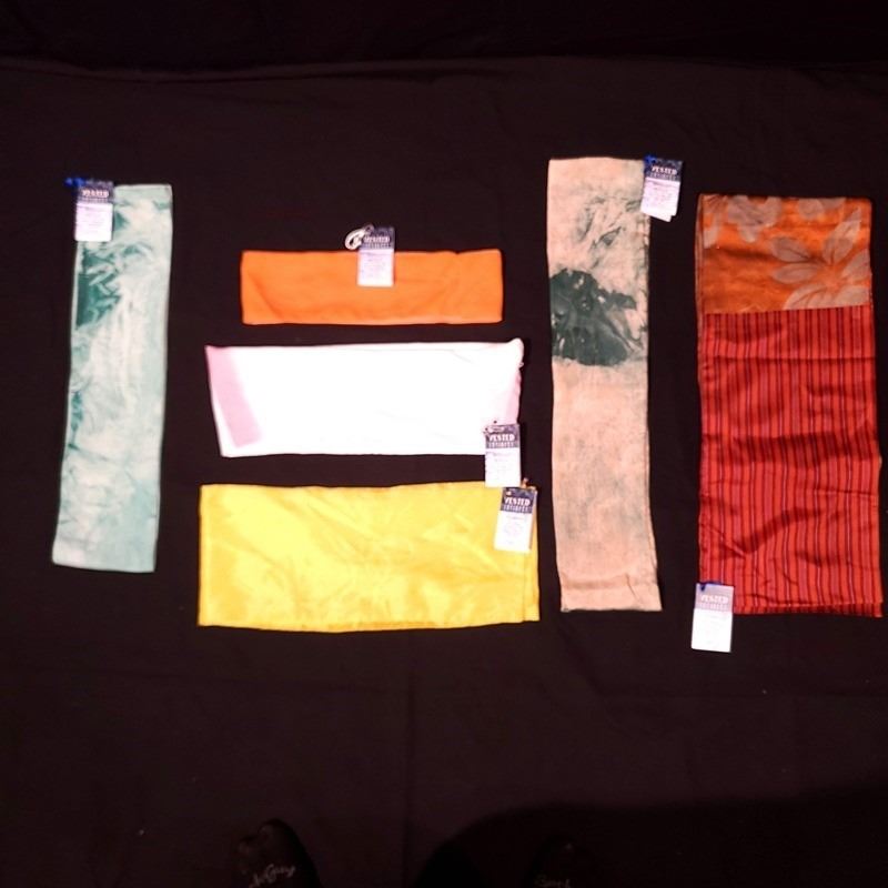 One Hand Dyed Table Runner, One Yellow Silk Scarf Monoa Collection, One Hand Dyed Scarf, One Infinity Scarf Pink Ombre, One Loosing Hand Dyed Scarf, One Orange infinity Scarf
