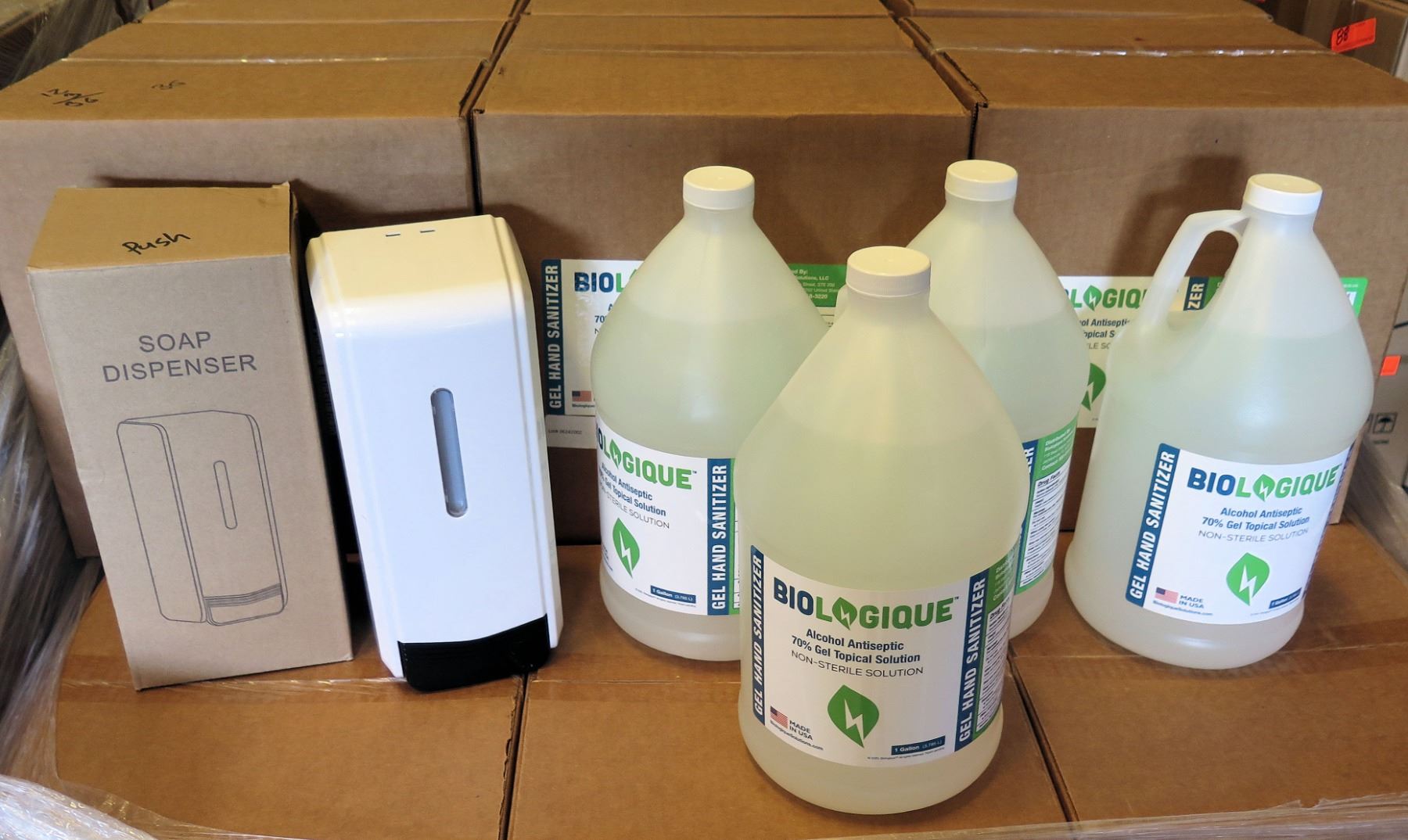 Hand Sanitizer Dispenser & 4 Gal Bottles Sanitizer 70%Gel