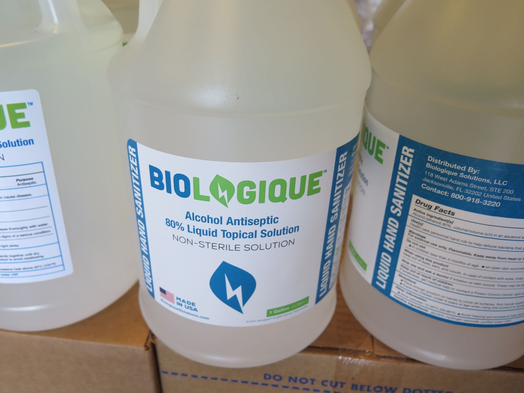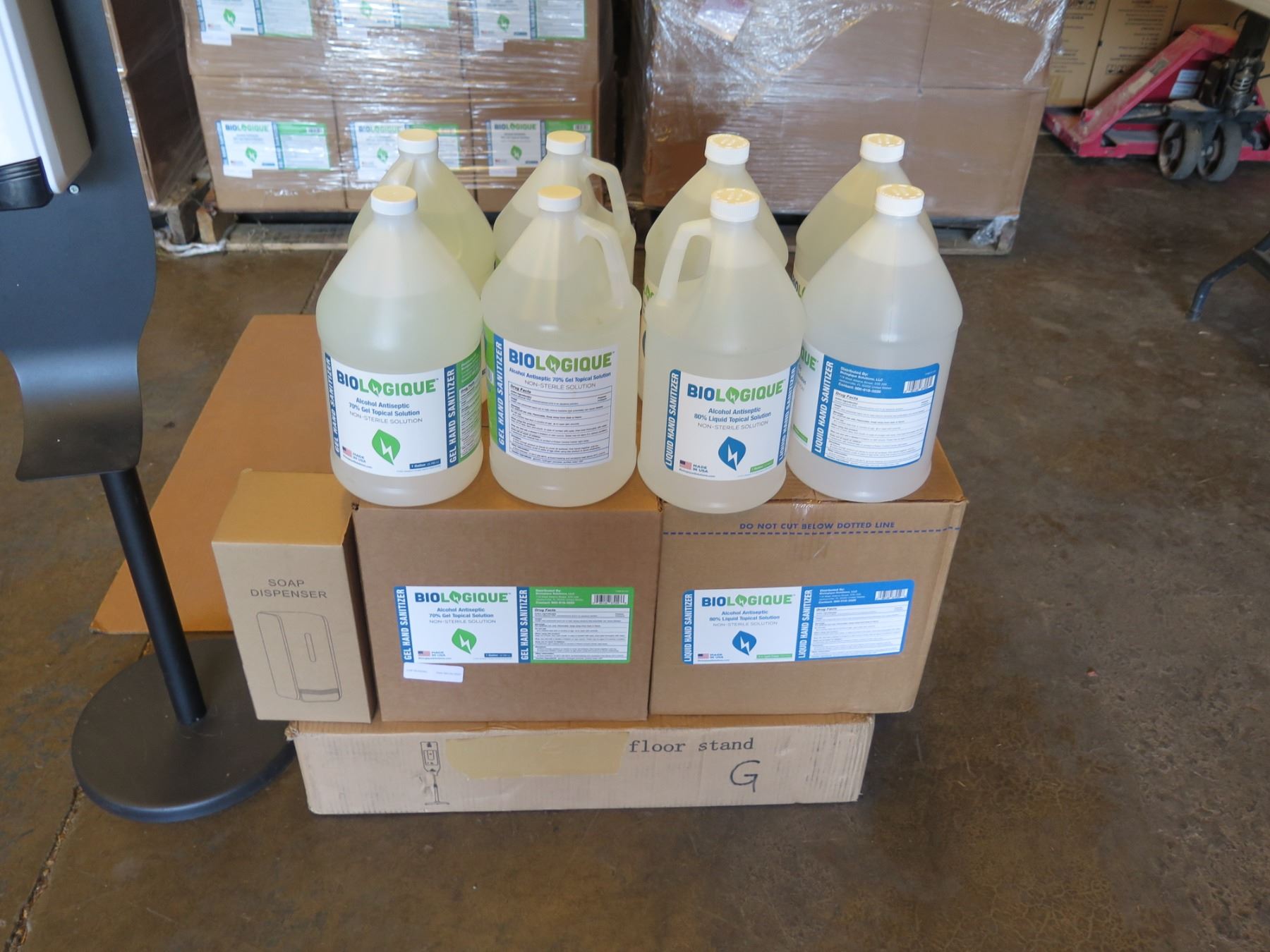 Hand Sanitizer Dispenser, Floor Stand & 8 Gal Bottles Sanitizer 80%Liq/70%Gel