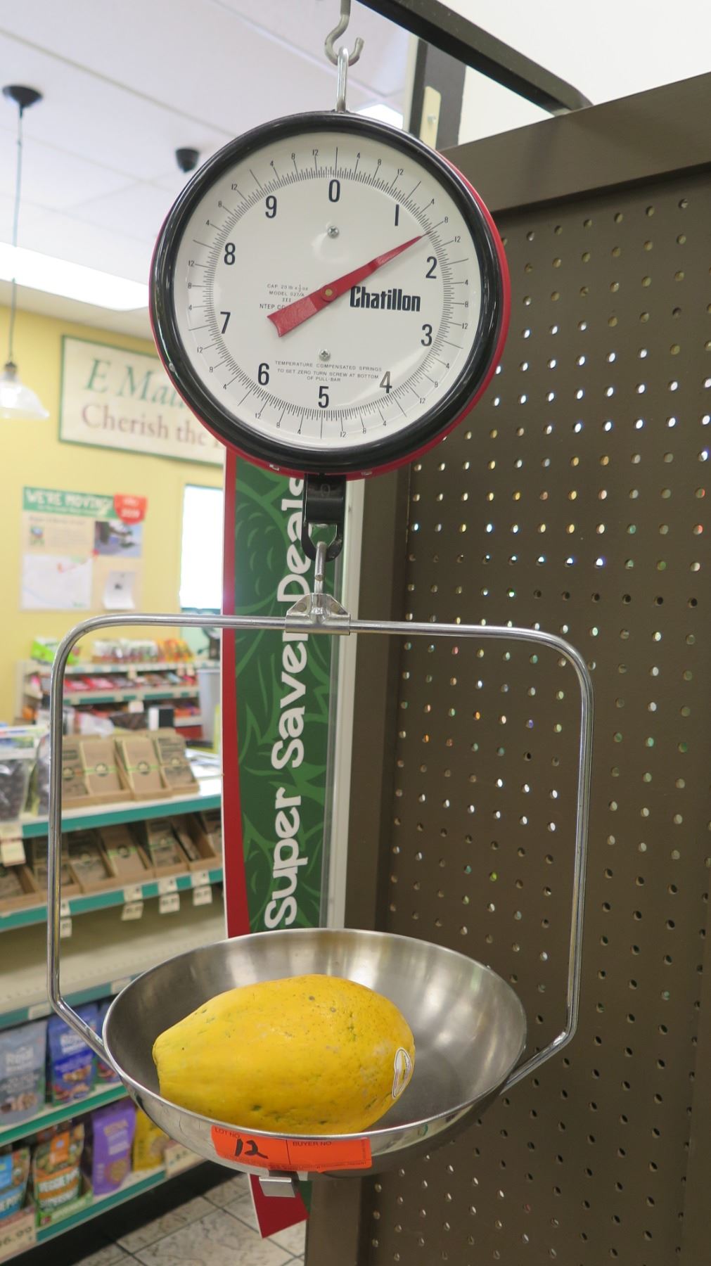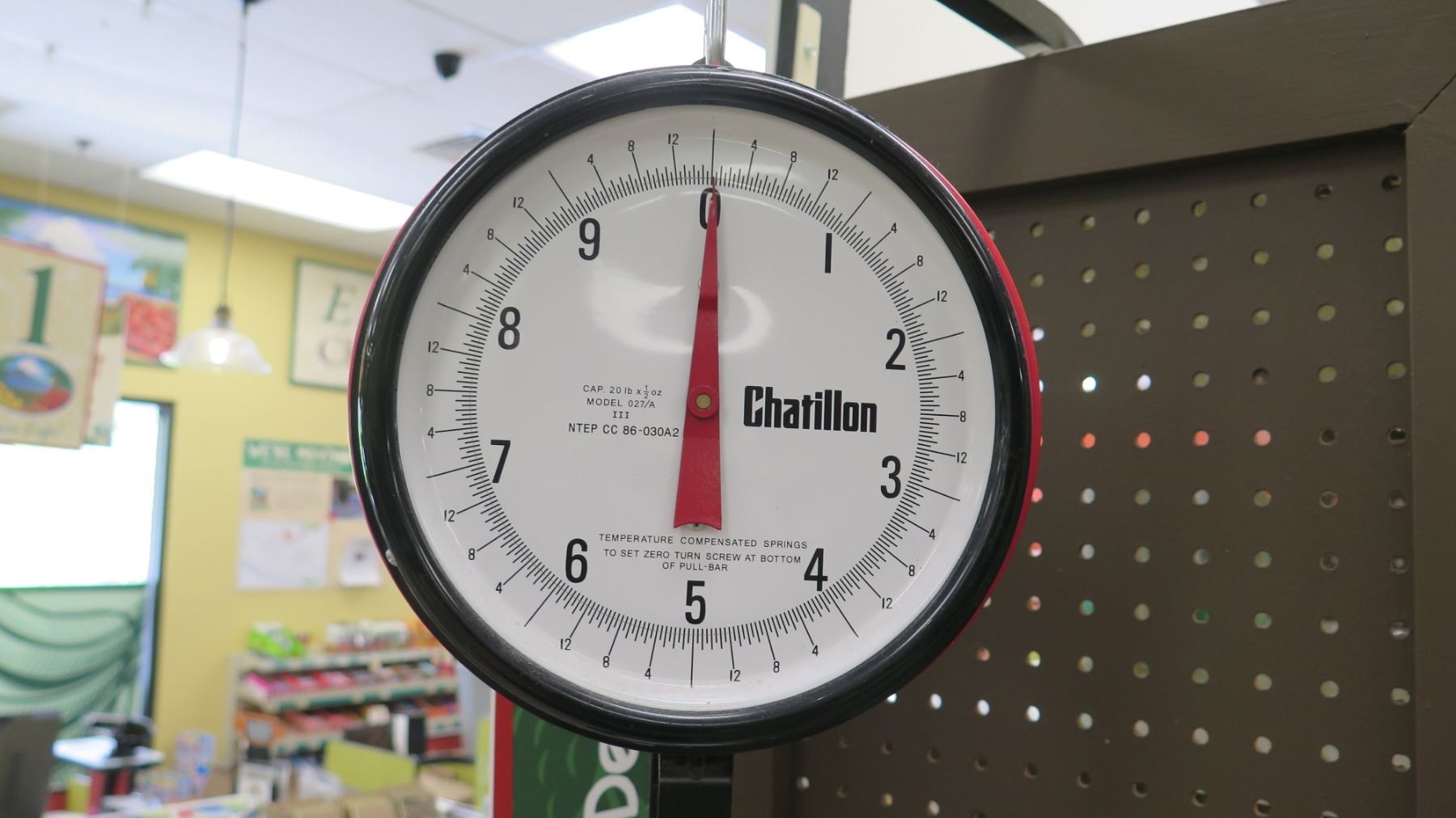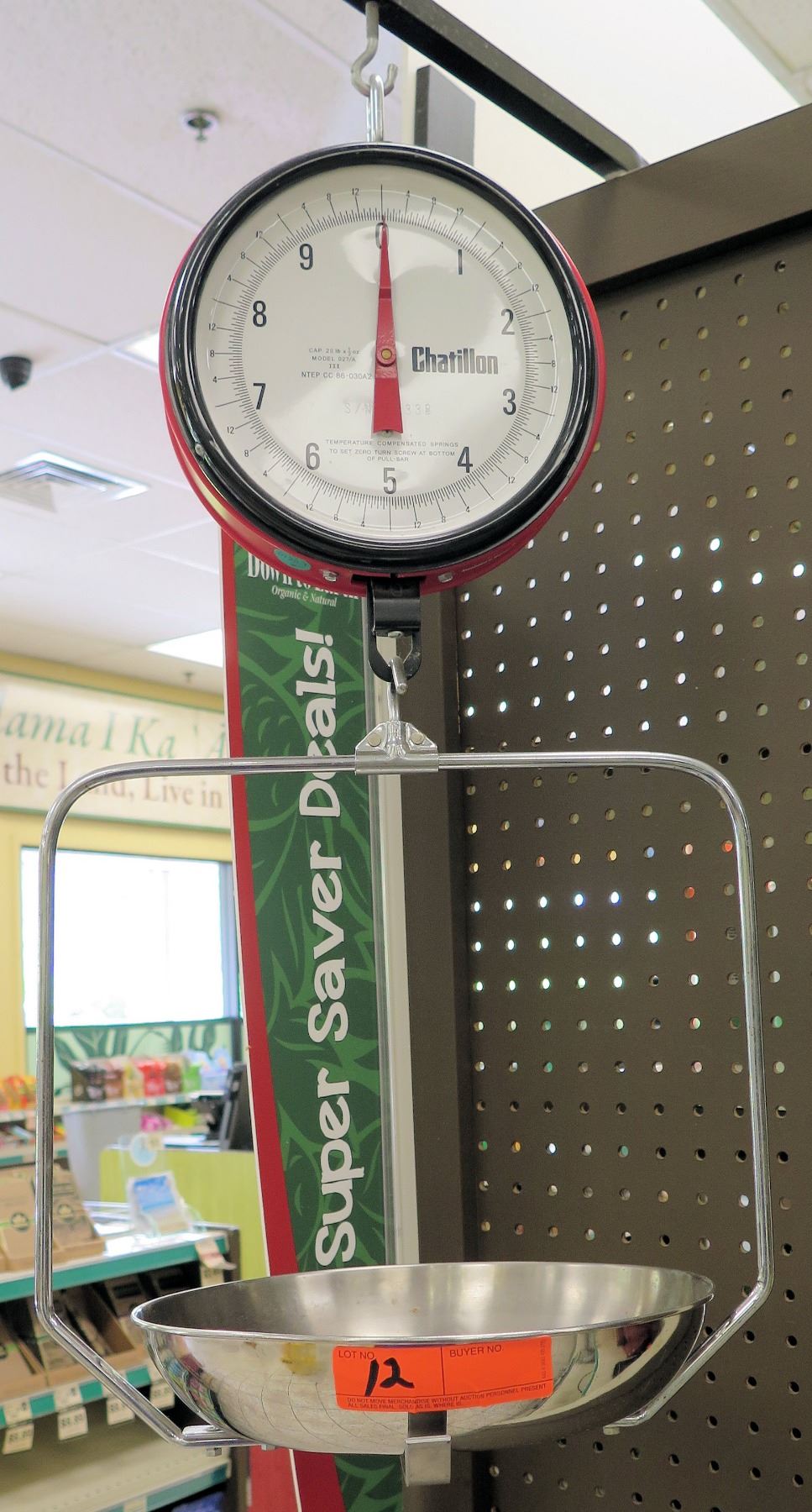 Hanging Chatillon 10 Pound Weight Scale. FOOD PRODUCTS AND MERCHANDISE IN THE PICTURES ARE NOT INCLUDED.