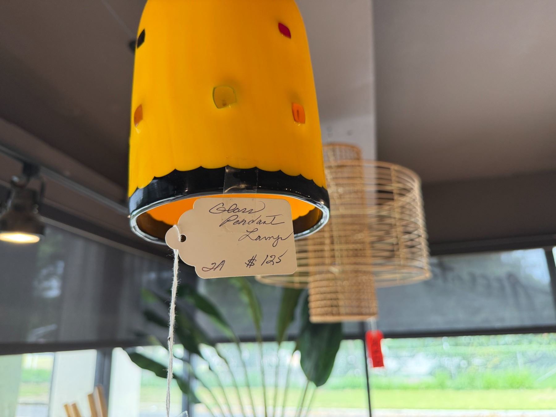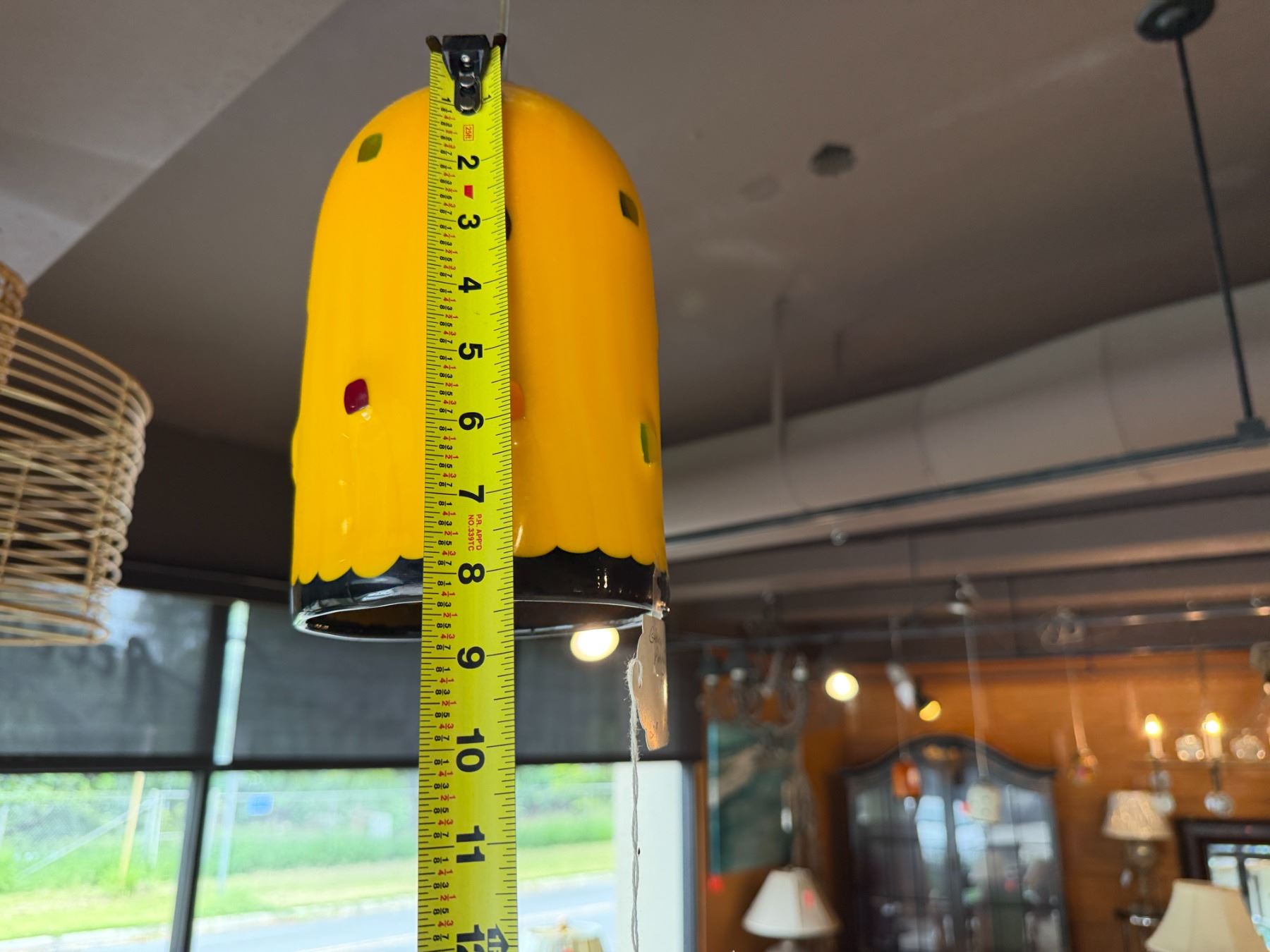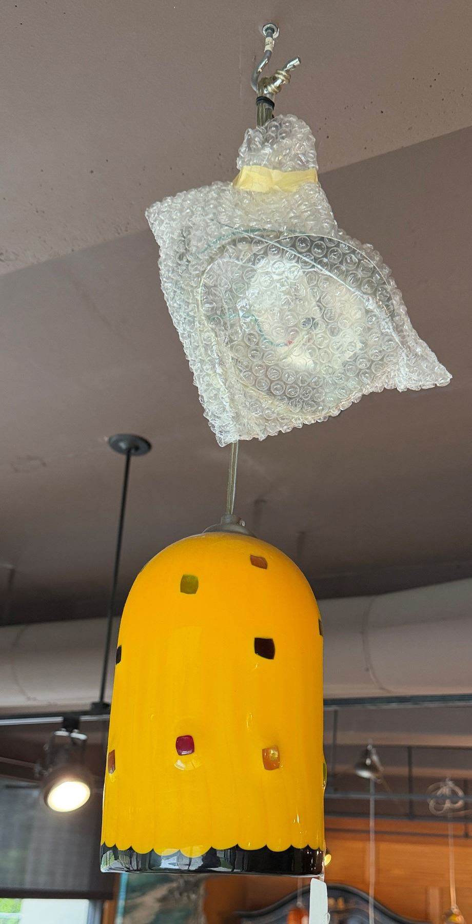 Hanging Yellow Glass Pendant Lamp made in Italy 8.5"L