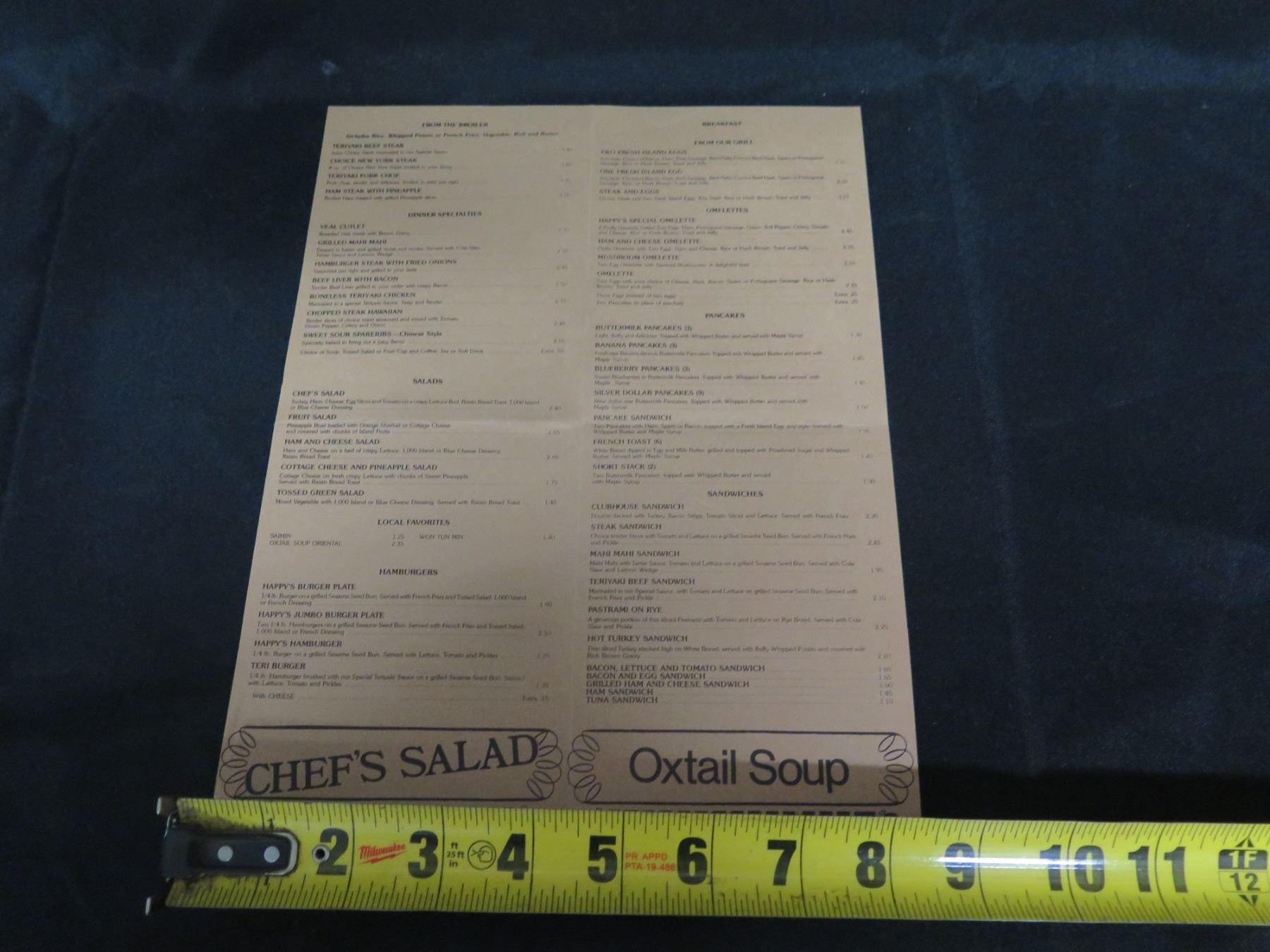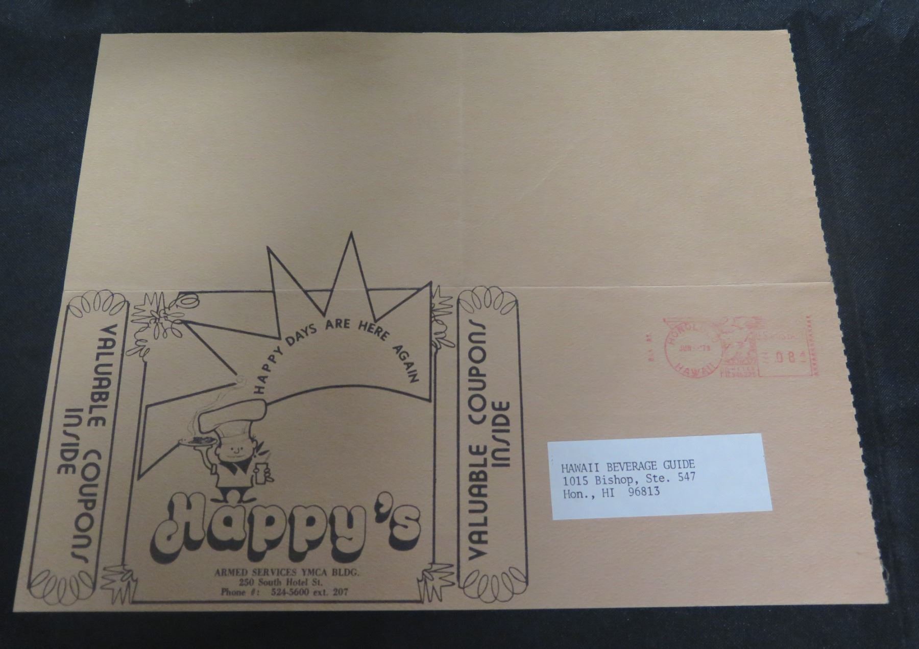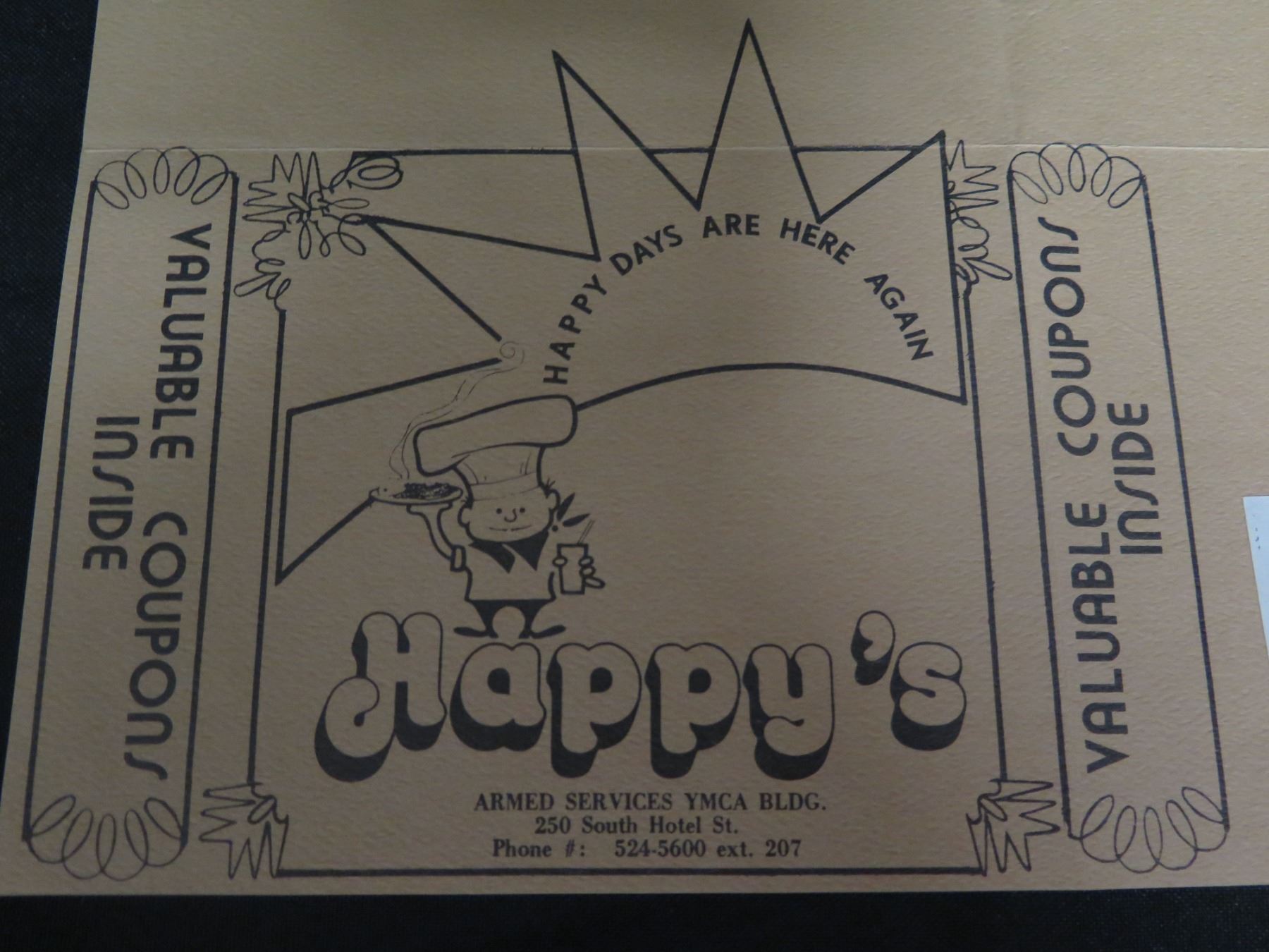 Happy's Armed Services YMCA Building Menu w/ Coupons 11"x8.5"