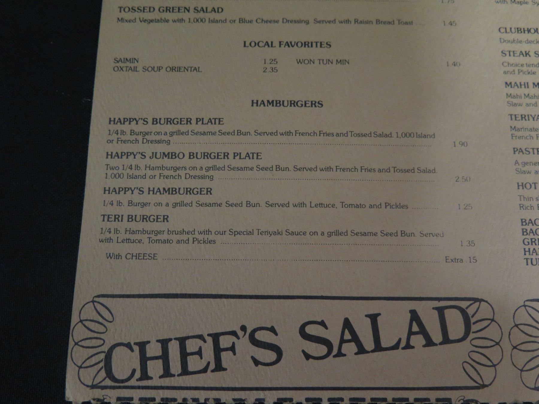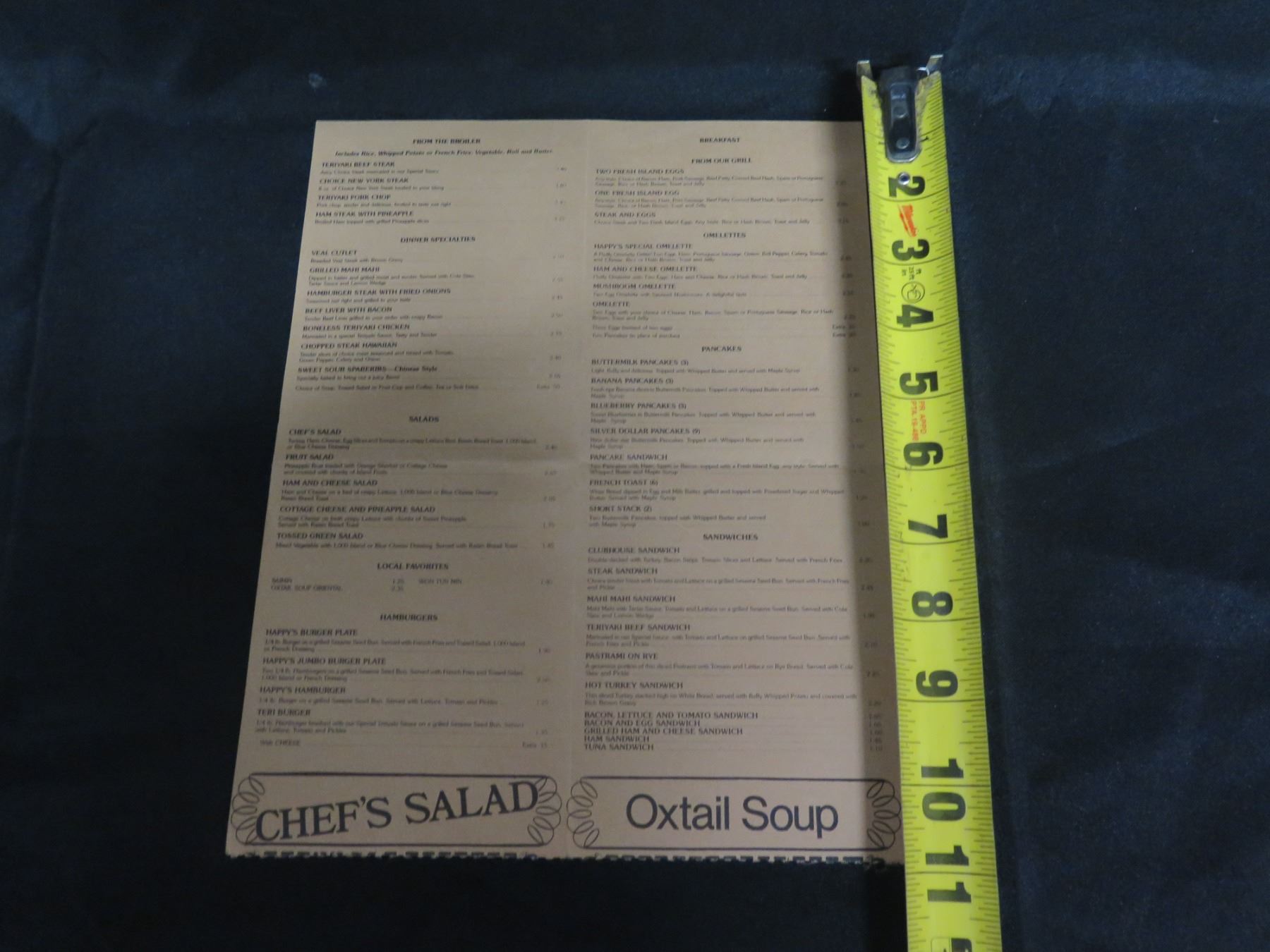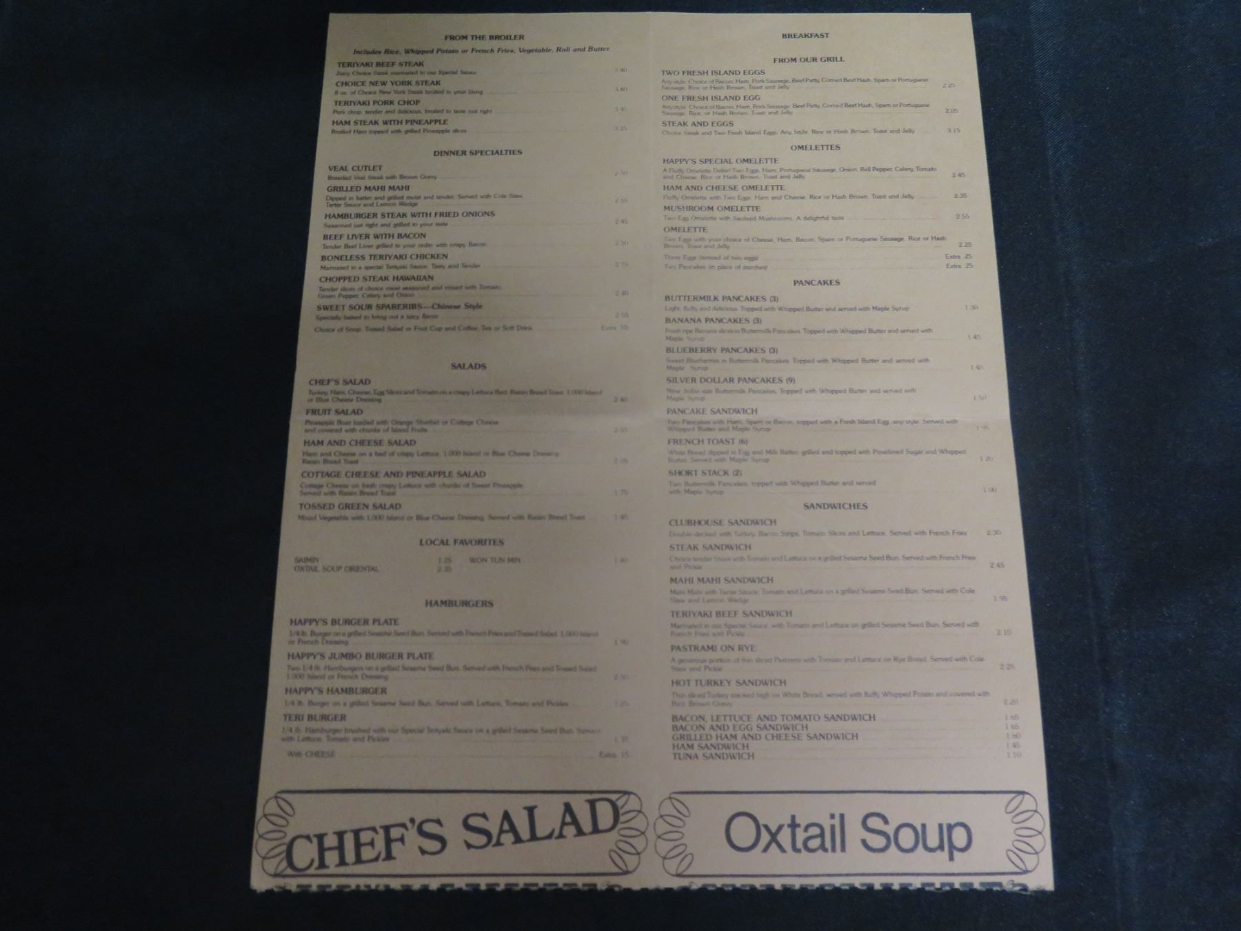 Happy's Armed Services YMCA Building Menu w/ Coupons 11"x8.5"
