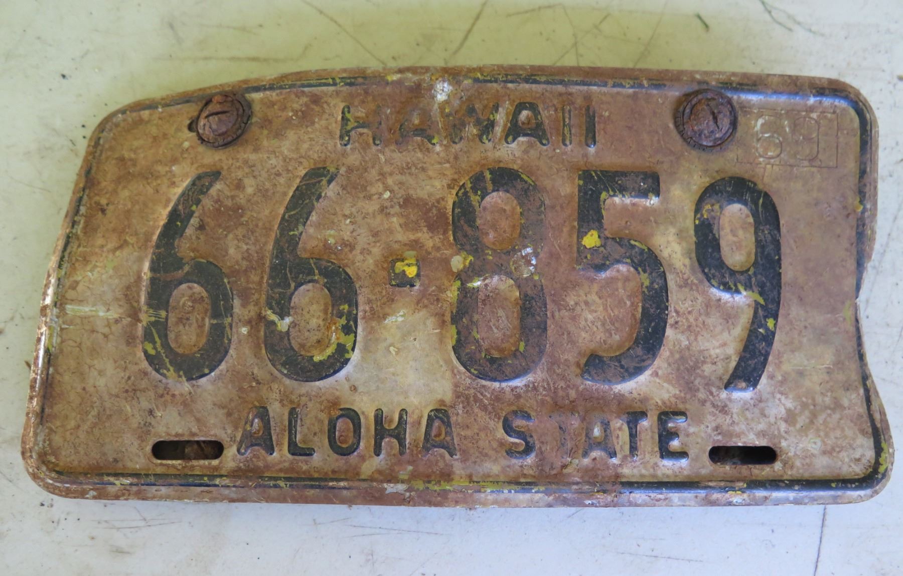 Hawaii Aloha State License Plate 66-859 over CA Plate